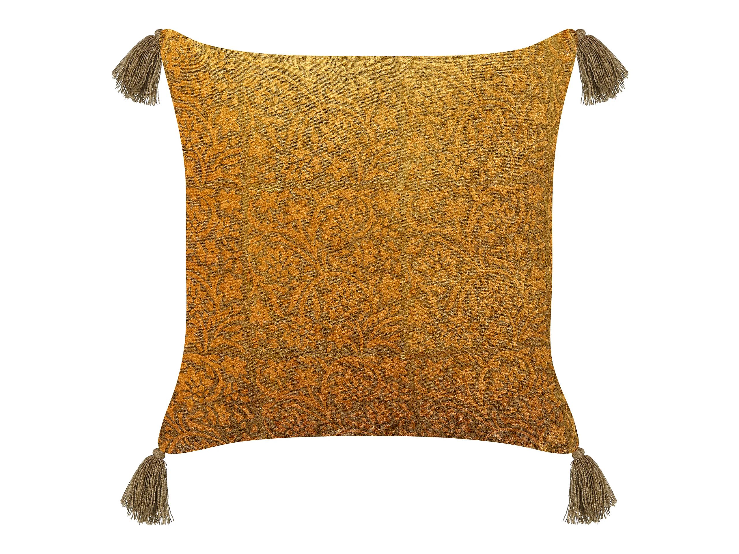 Coussin RHEUM Velours 45 x 45 cm Jaune Motif floral