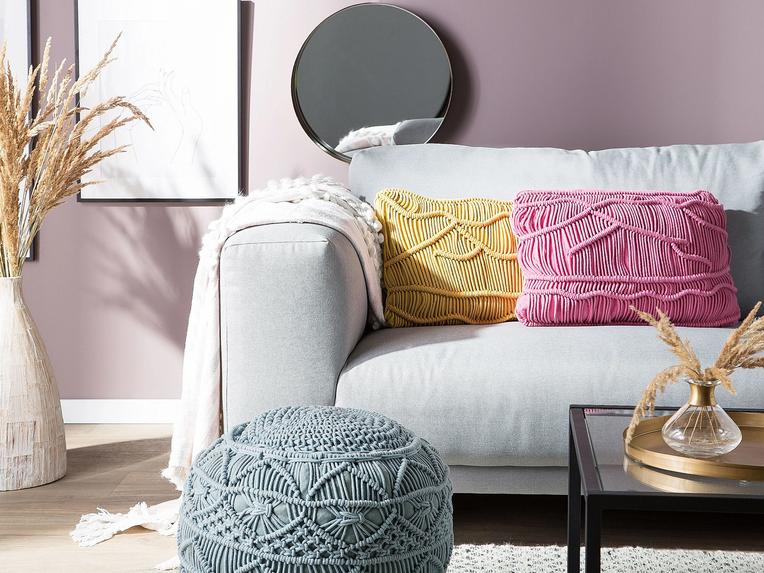 Coussin KIRIS Coton 30 x 50 cm Unicolore Macramé Jaune