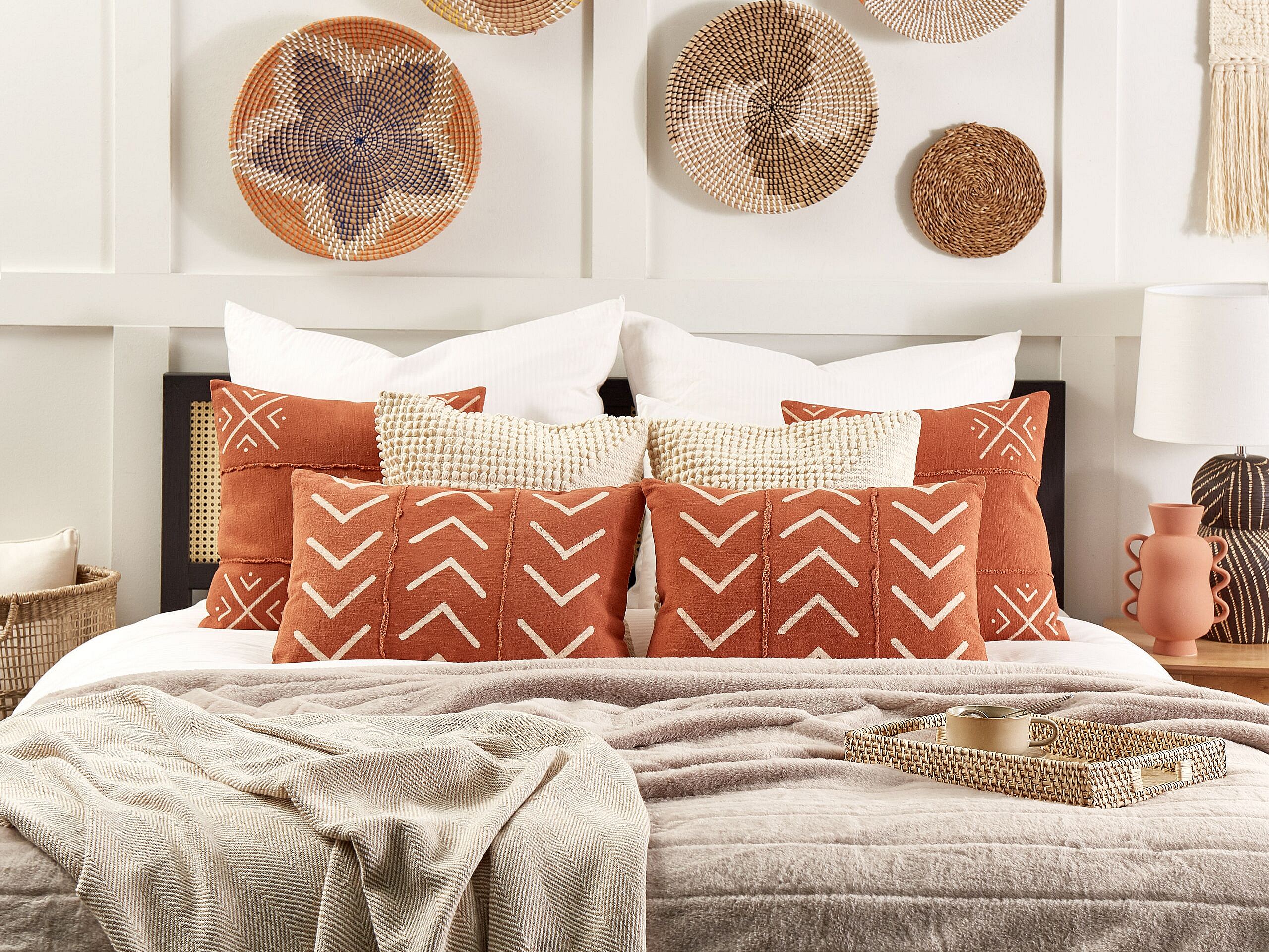 Coussin ORLAYA Coton 55 x 35 cm Orange Motif géométrique