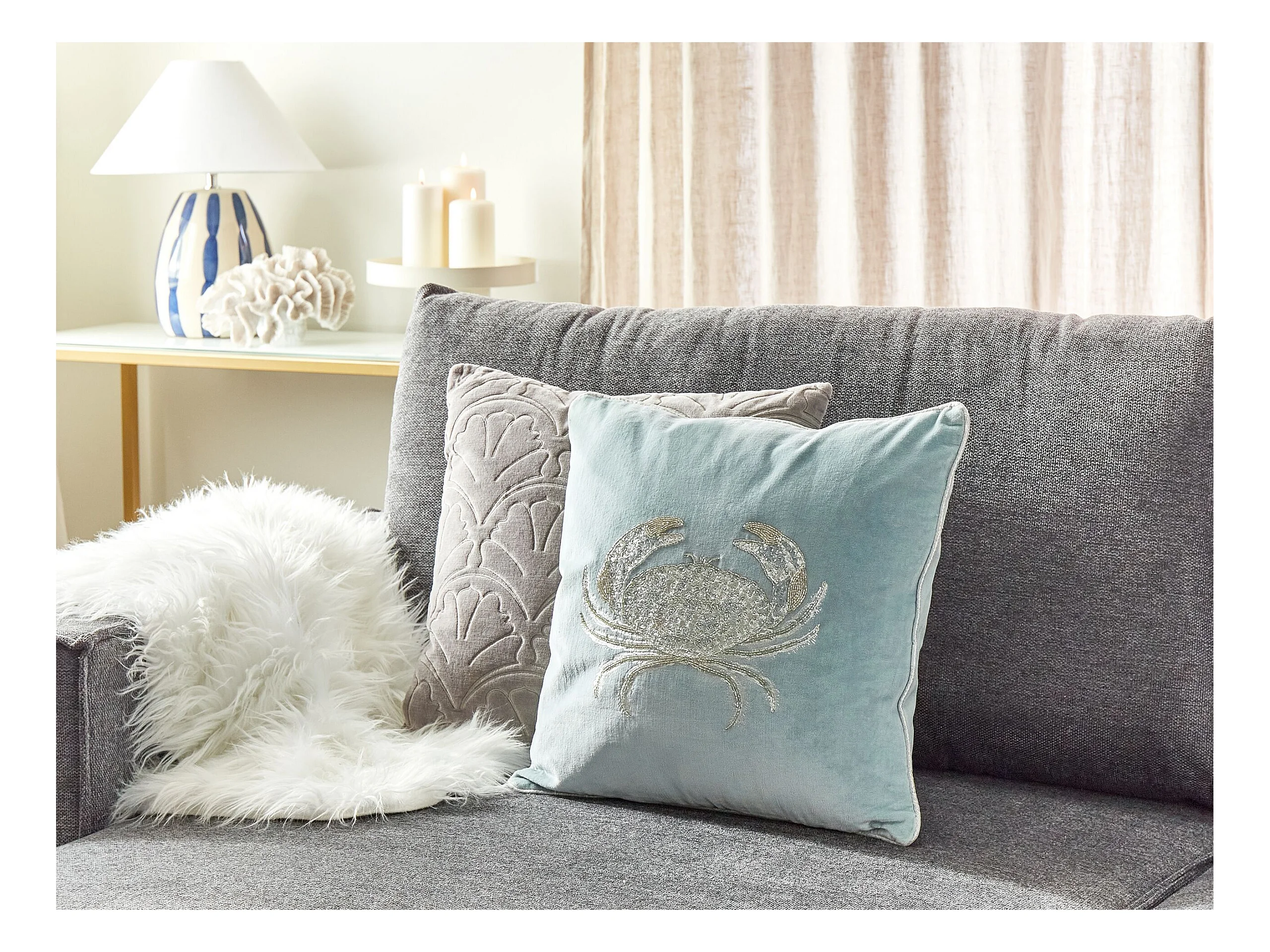 Coussin BOSSIELLA Velours 45 x 45 cm Bleu clair Motif animal
