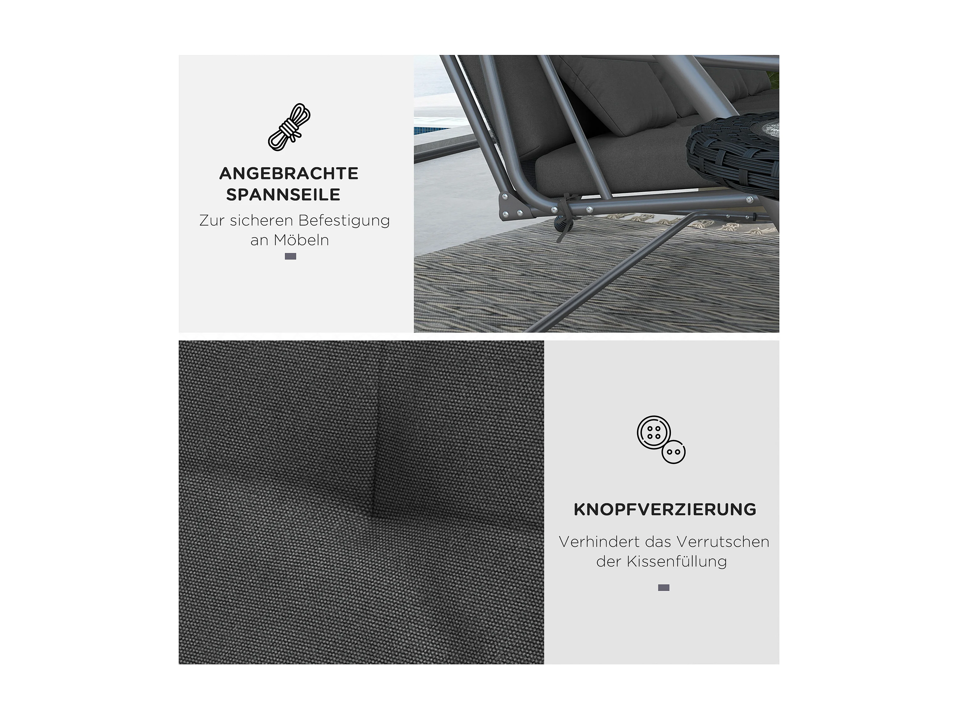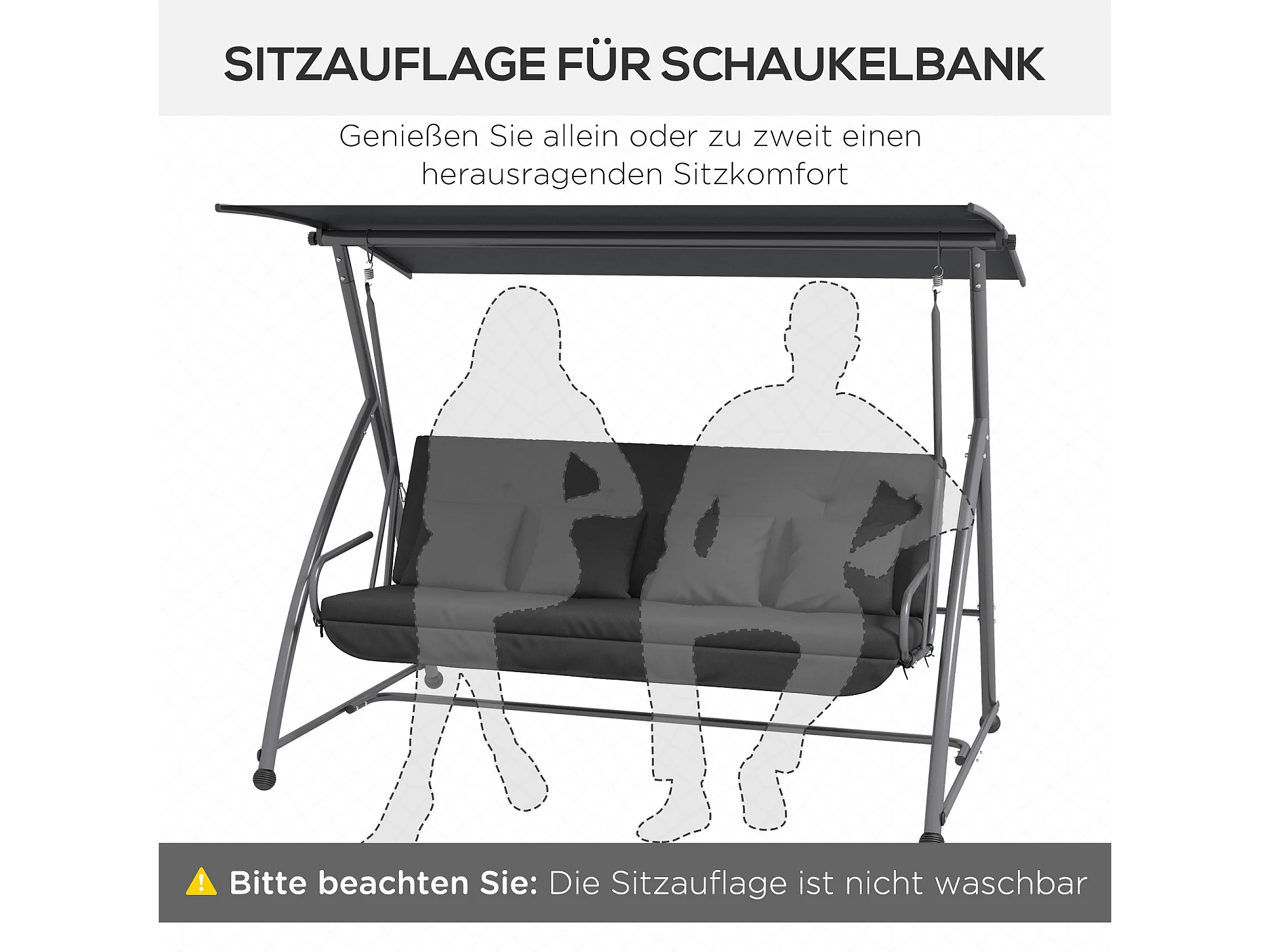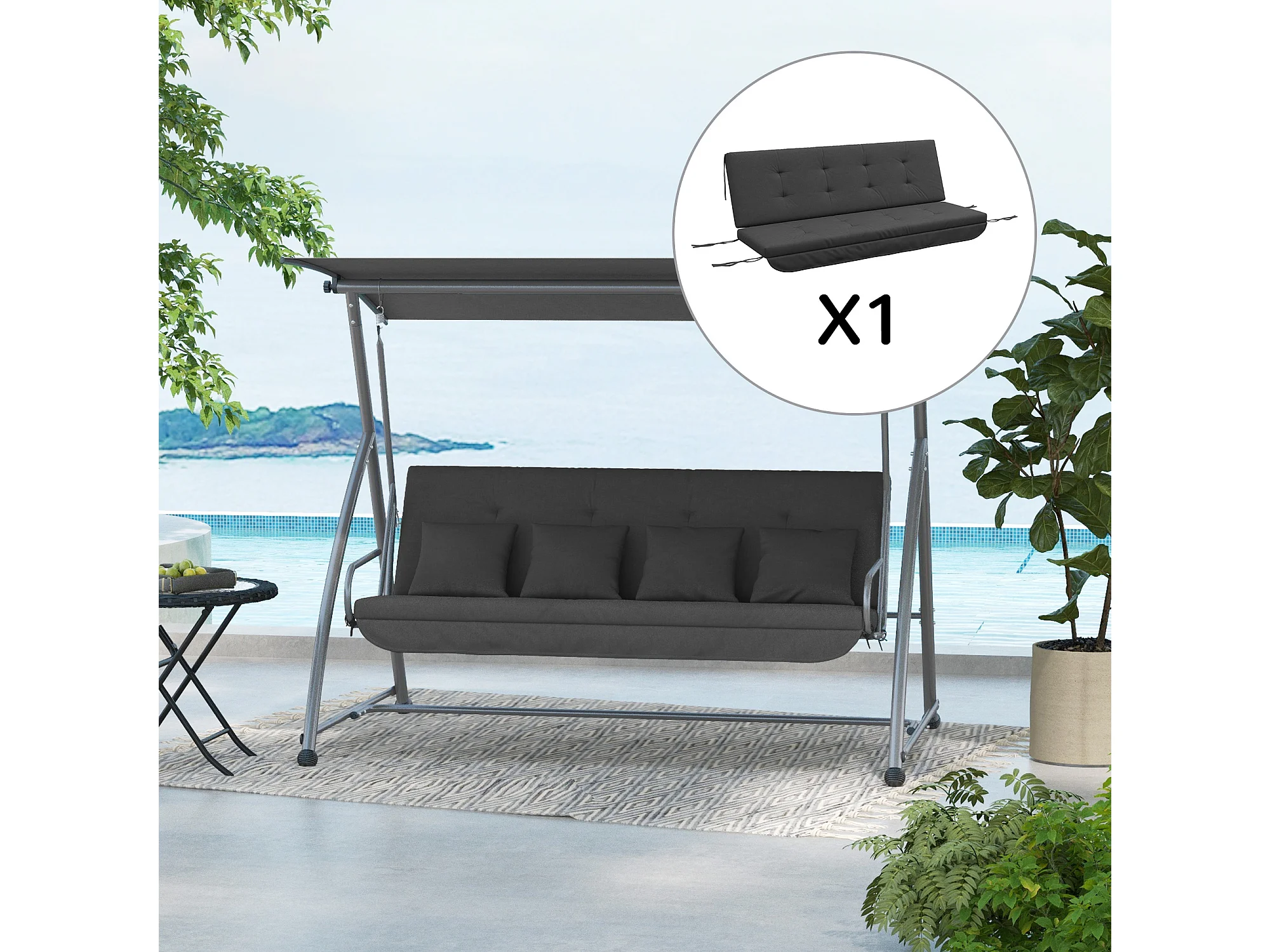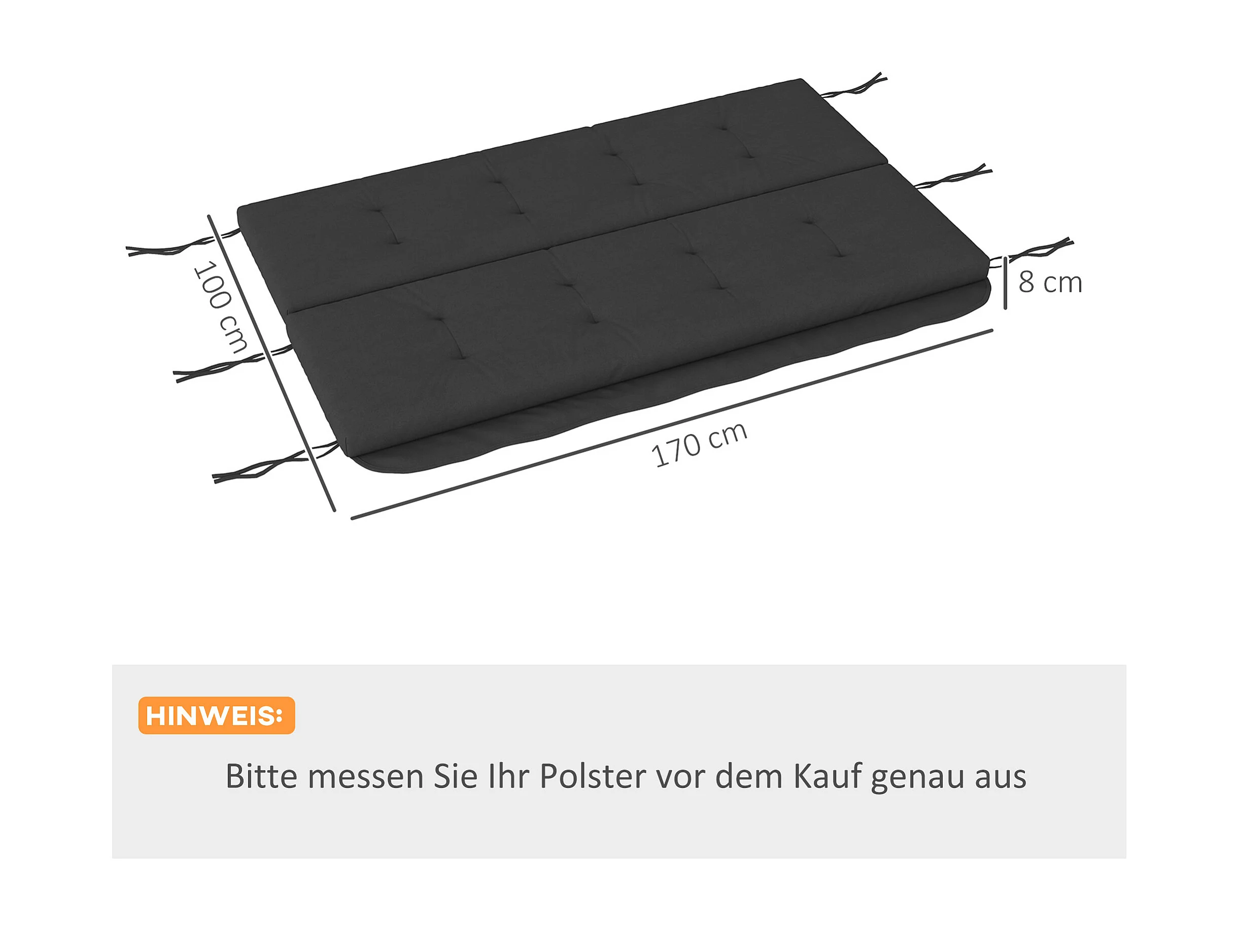 Coussin pour balançoire, 170 cm, polyester, gris, avec fixation (170x100x8 cm)