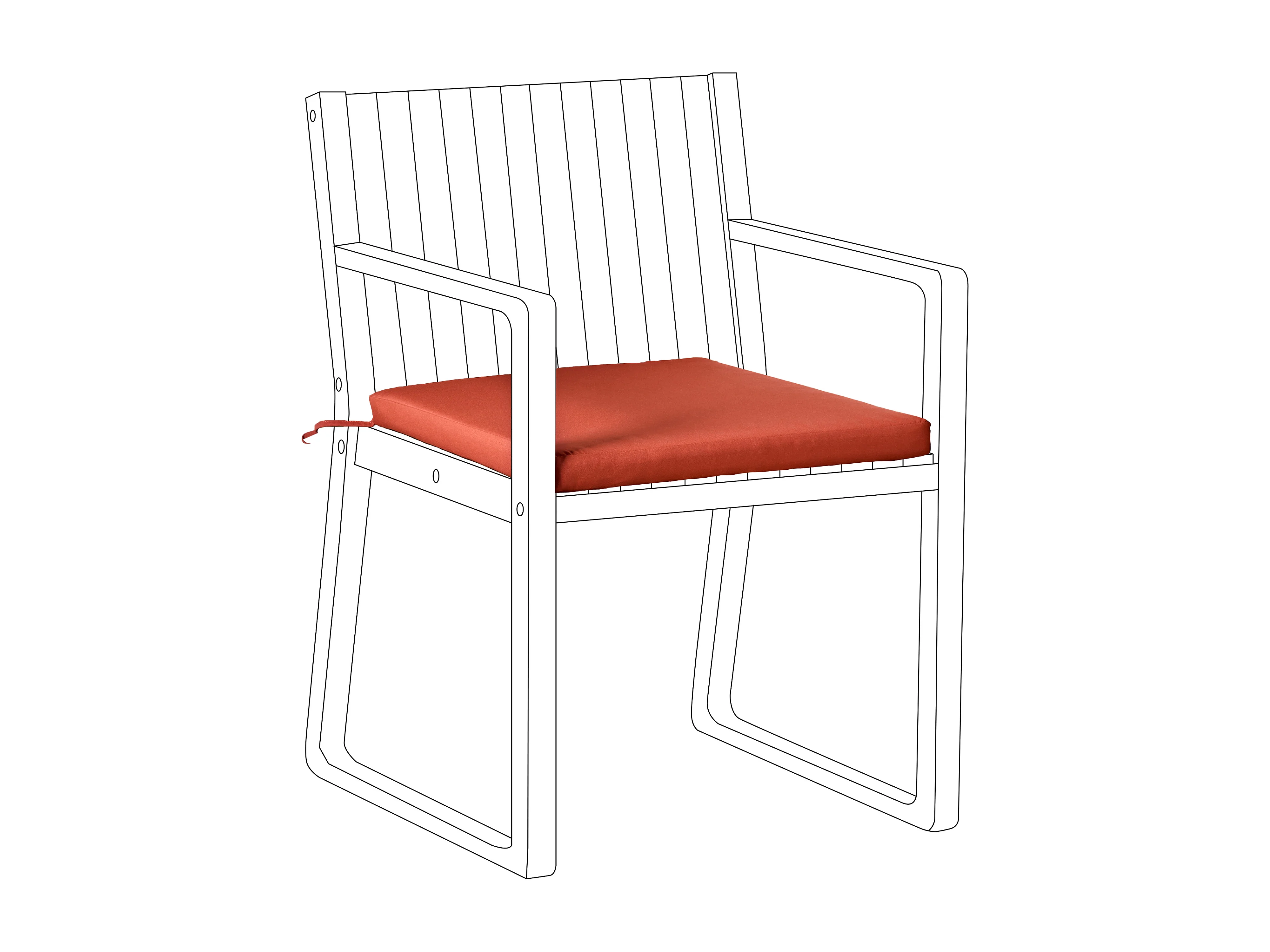 Lot de 4 galettes de chaise à rabat, 40x40 cm, terracotta, avec nouettes, collection Basic