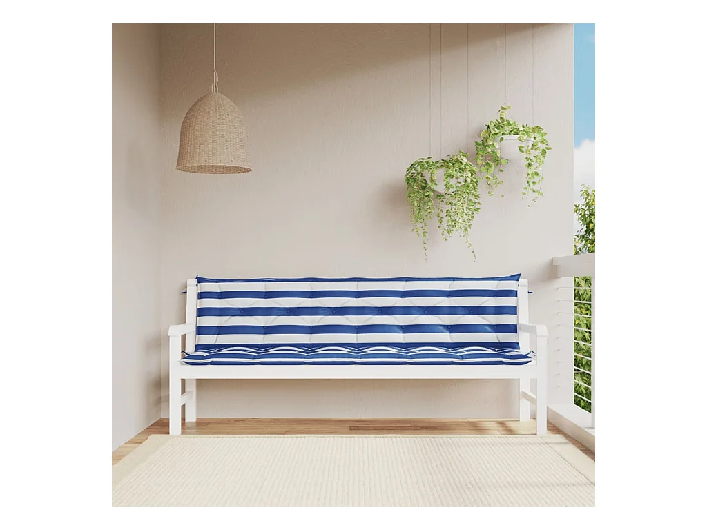 Coussin de banc de jardin rayures bleues et blanches 200x50x7cm