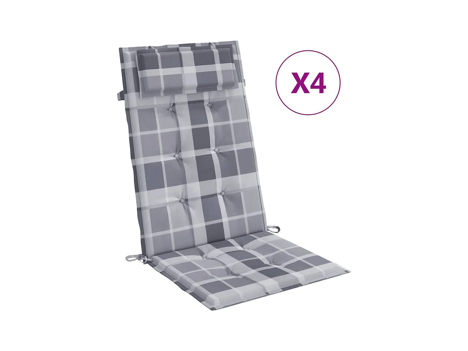 Coussins de chaise à dossier haut Lot de 4 carreaux gris OFR60495