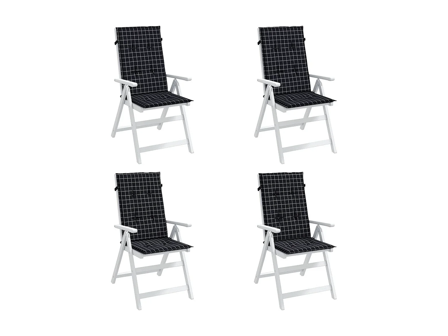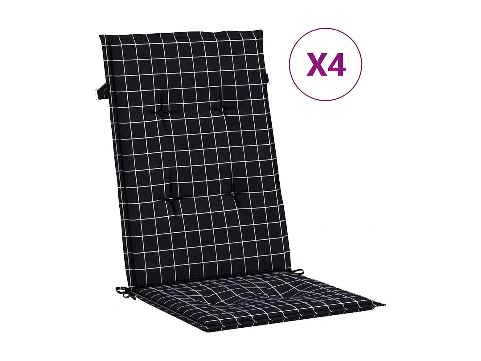 Coussins de chaise à dossier haut lot de 4 noir à carreaux