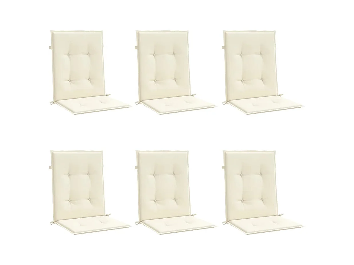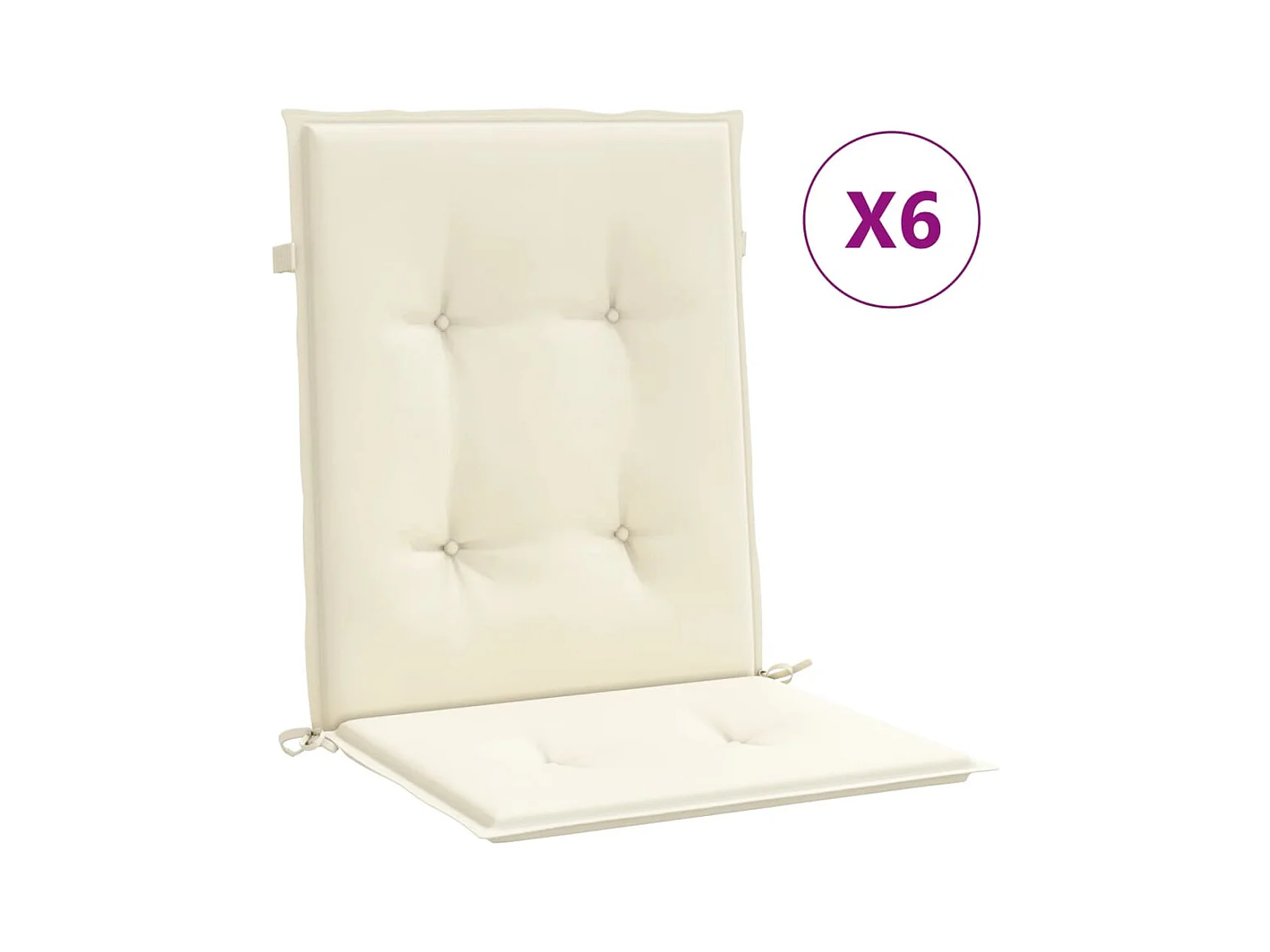 Coussins de chaise de jardin à dossier bas lot de 6 crème