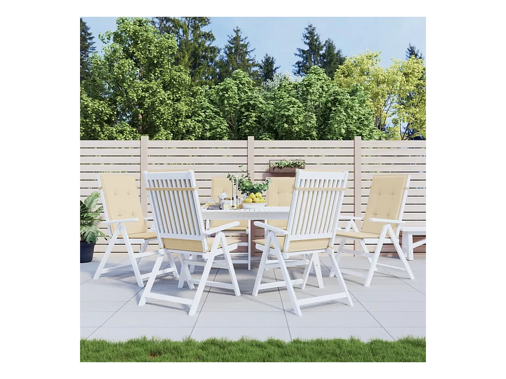 Coussins de chaise de jardin dossier haut lot de 6 crème tissu