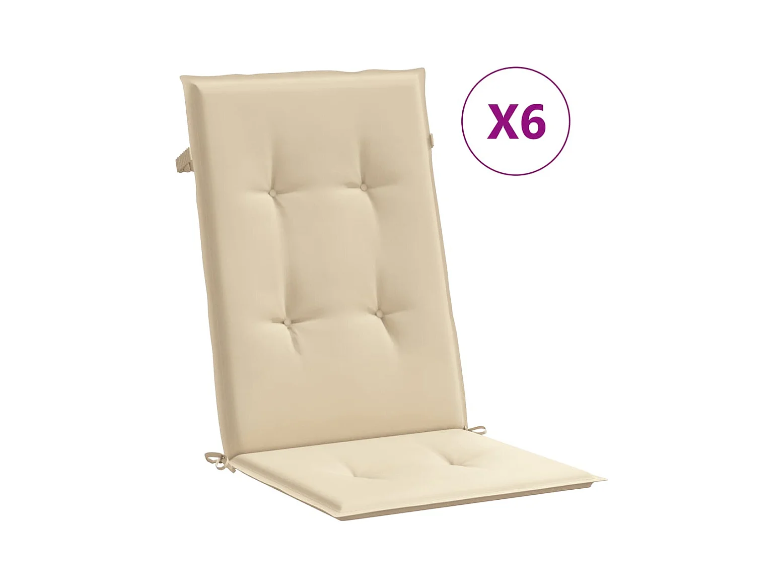 Coussins de chaise de jardin dossier haut lot de 6 beige tissu