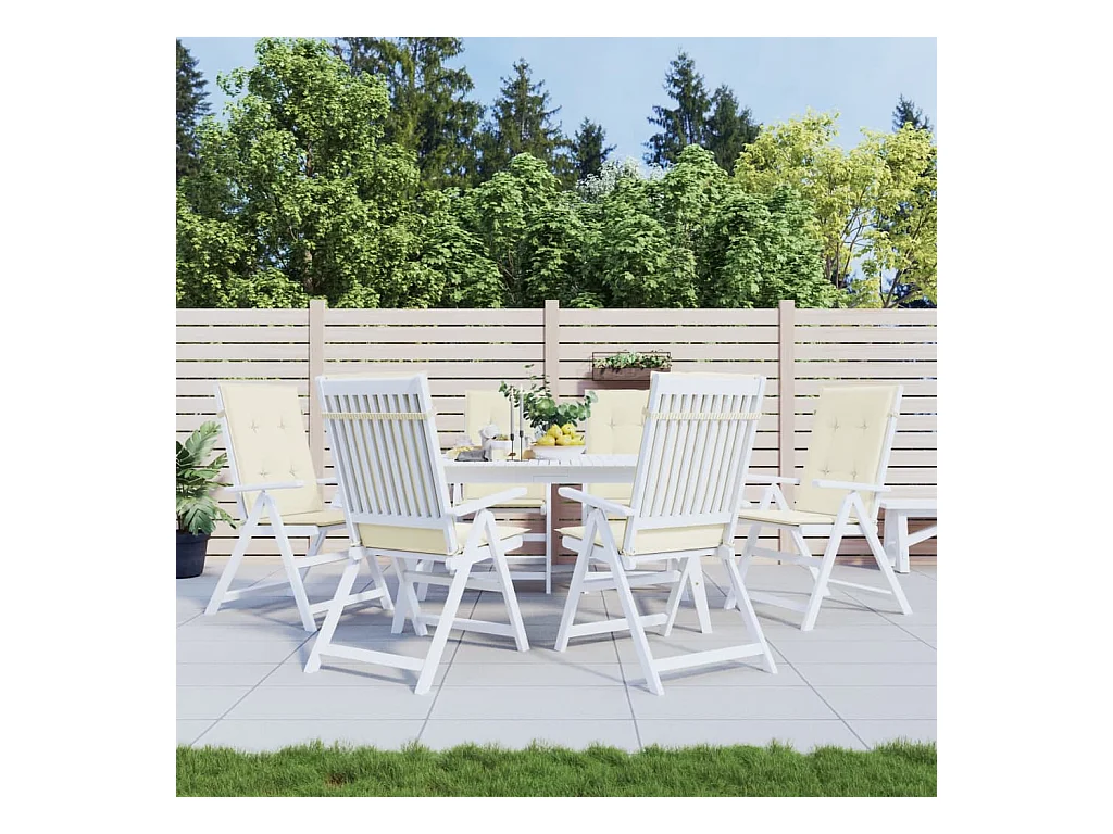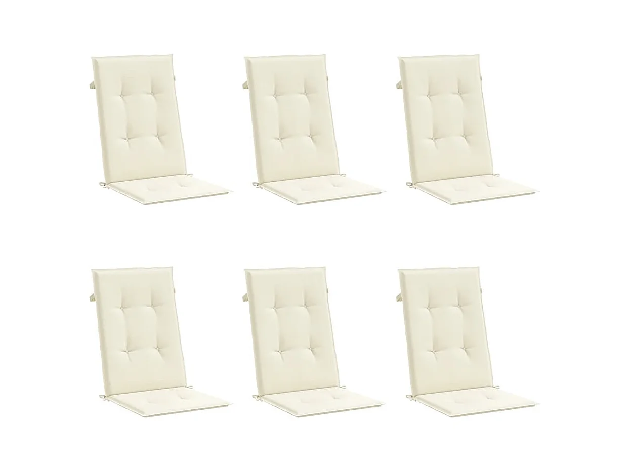 Coussins de chaise de jardin dossier haut lot de 6 crème tissu