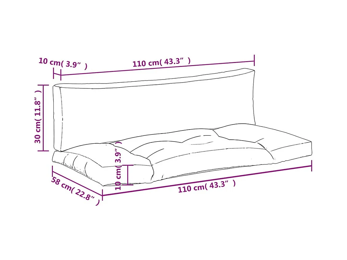 Ensemble de coussins en palette bleu marine 60x38x13 cm tissu
