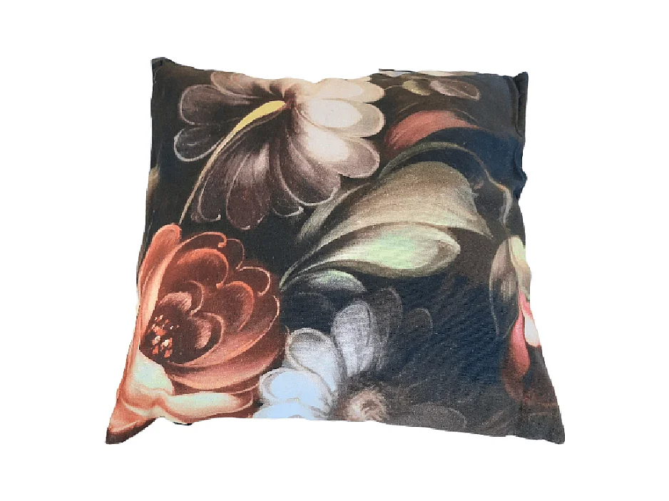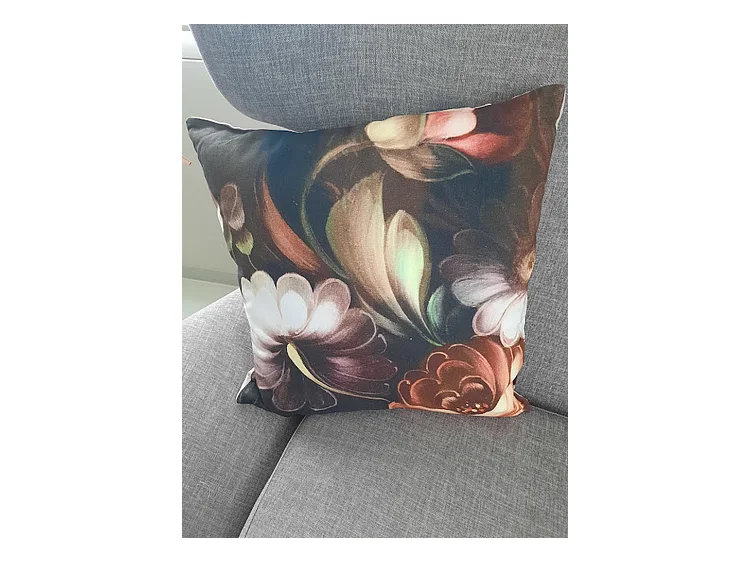 Coussin OSMUNDA Velours 45 x 45 cm Noir Motif floral