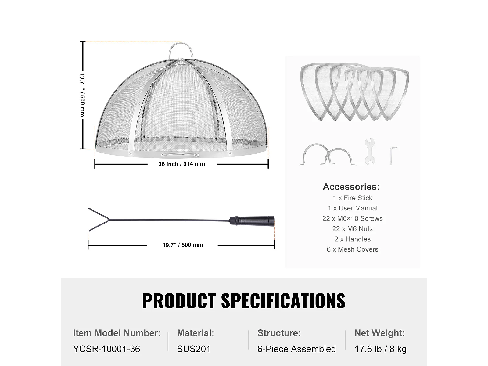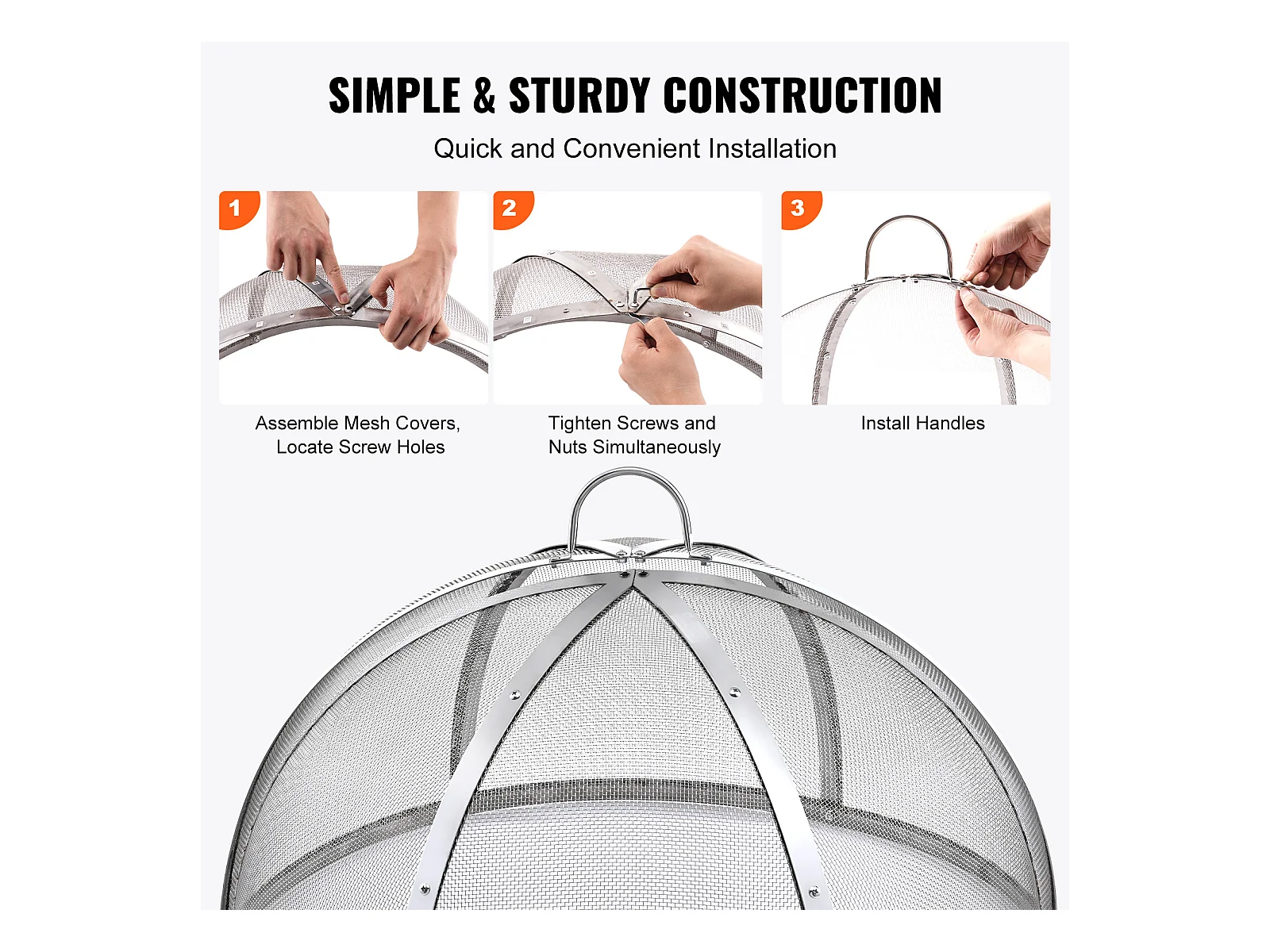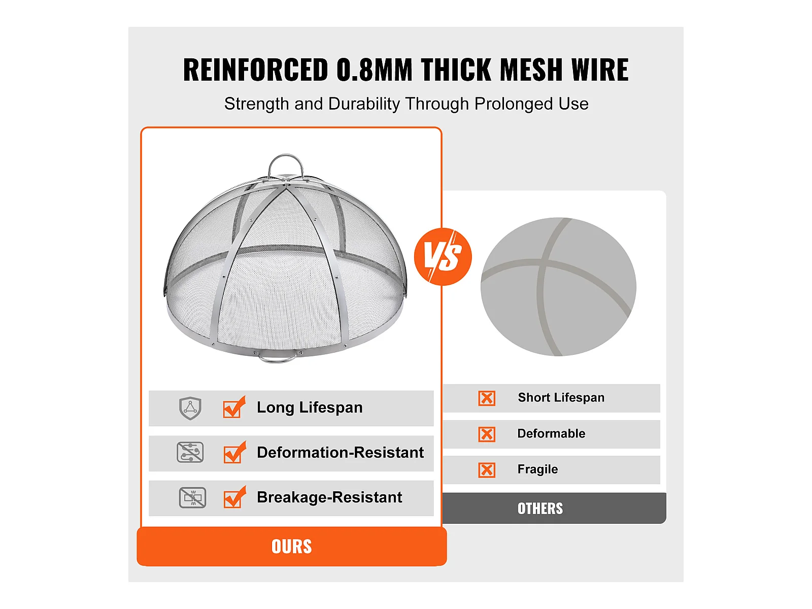 Couvercle de Protection SucceBuy contre les Étincelles pour Foyer Rond de 91.44cm en Acier Inoxydable pour Combustion du Bois