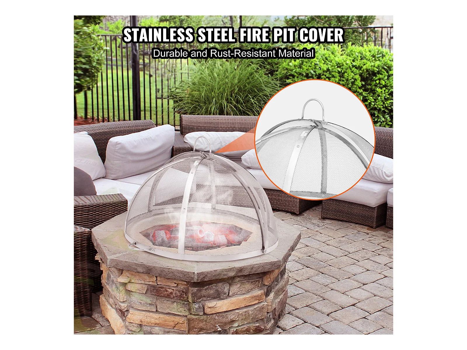 Couvercle de Protection SucceBuy Anti-Étincelles pour Foyer Rond à Bois de 76.2cm en Acier Inoxydable, Accessoires Ronds pour Anneau de Foyer Extérieur