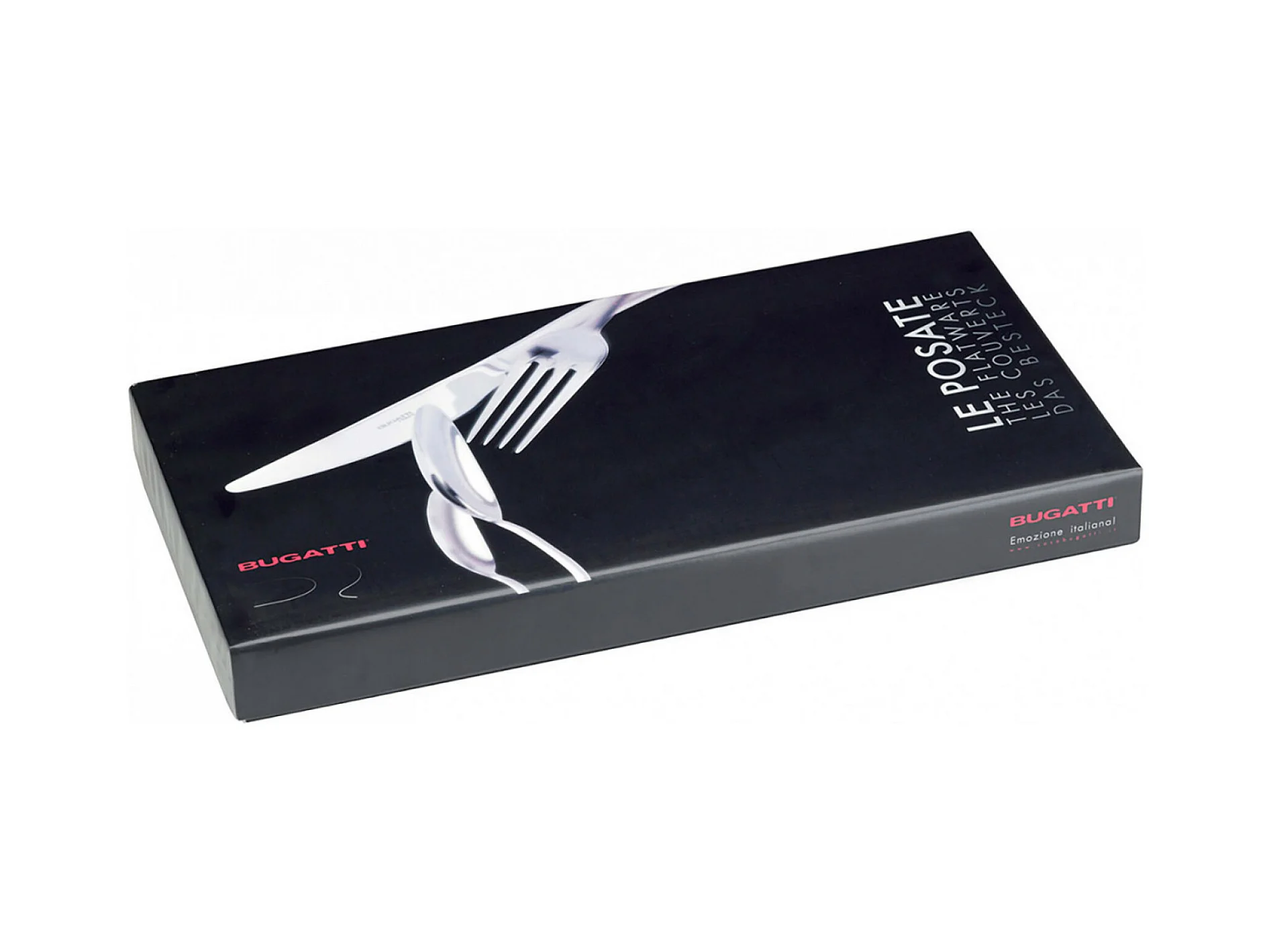 Couverts ALADDIN 24 pièces, bague chromée, manche noir, boîte Gallery
