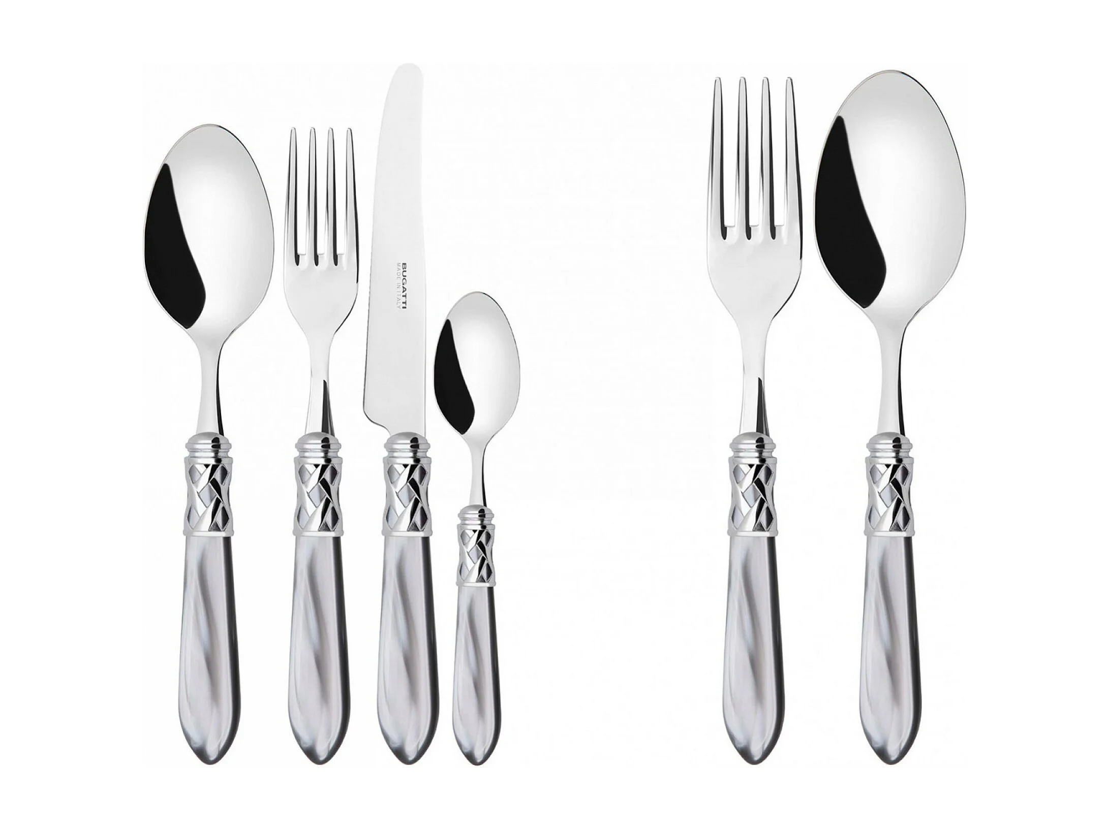 Couverts ALADDIN 50 pièces, bague chromée, manche gris, boîte Gallery