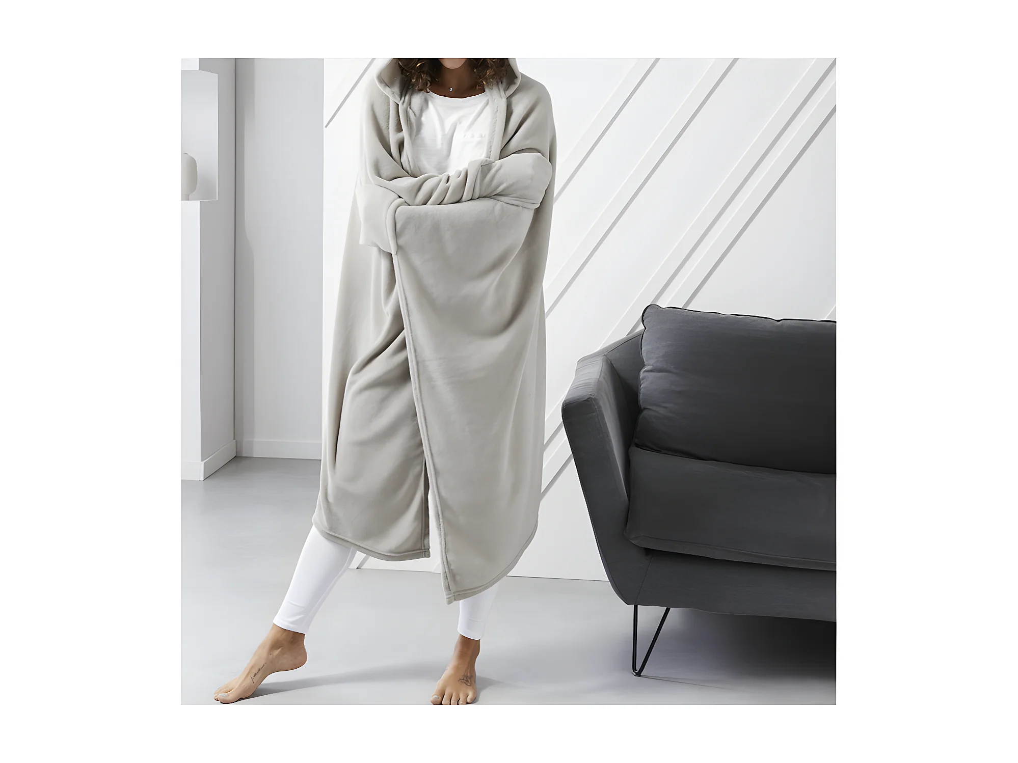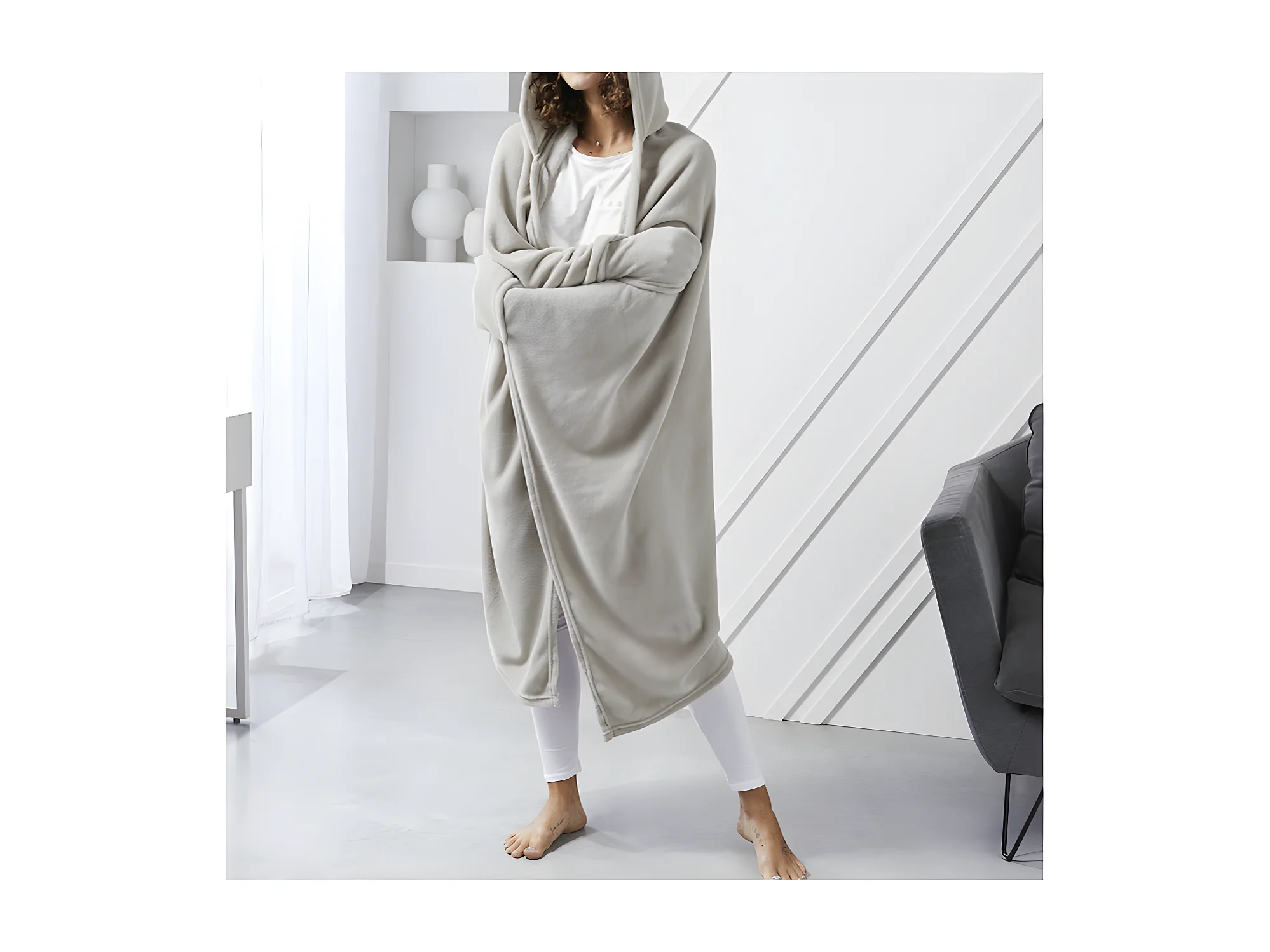 Couverture Plaid TV Polaire avec Manches et Capuche 165x115cm