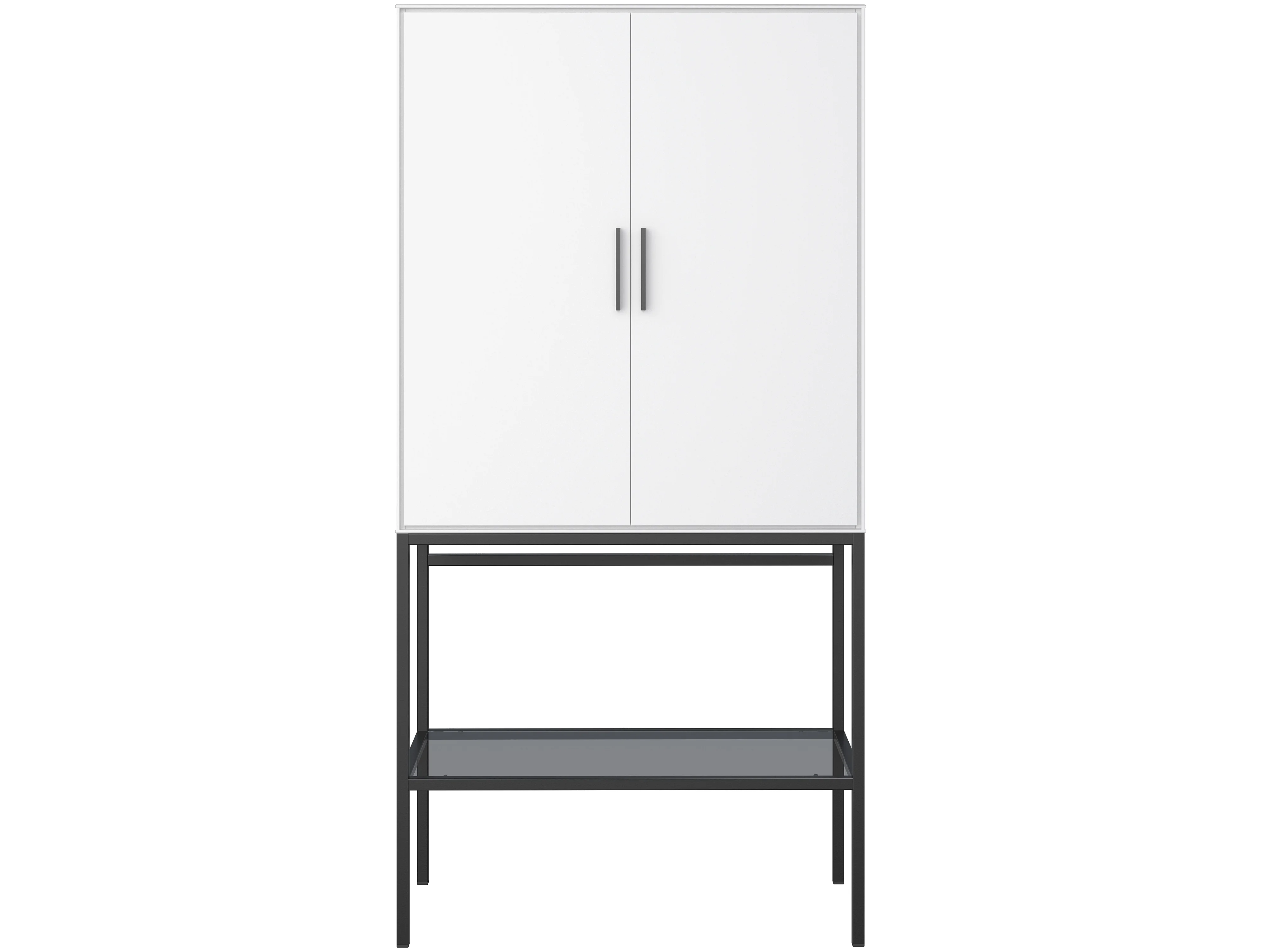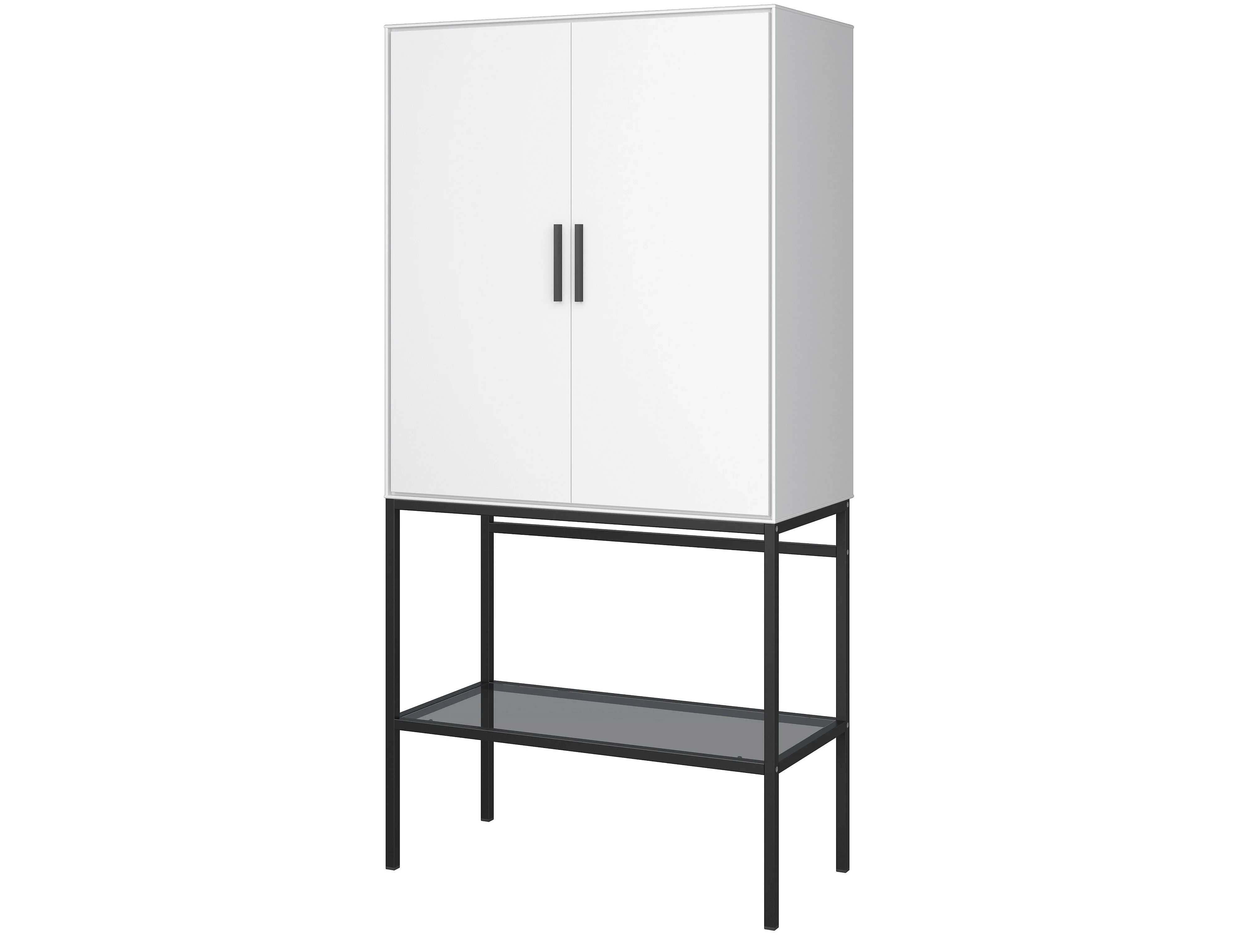 Cris Vitrine, 2 portes et Étagère en métal, blanc laqué, structure en métal noir.