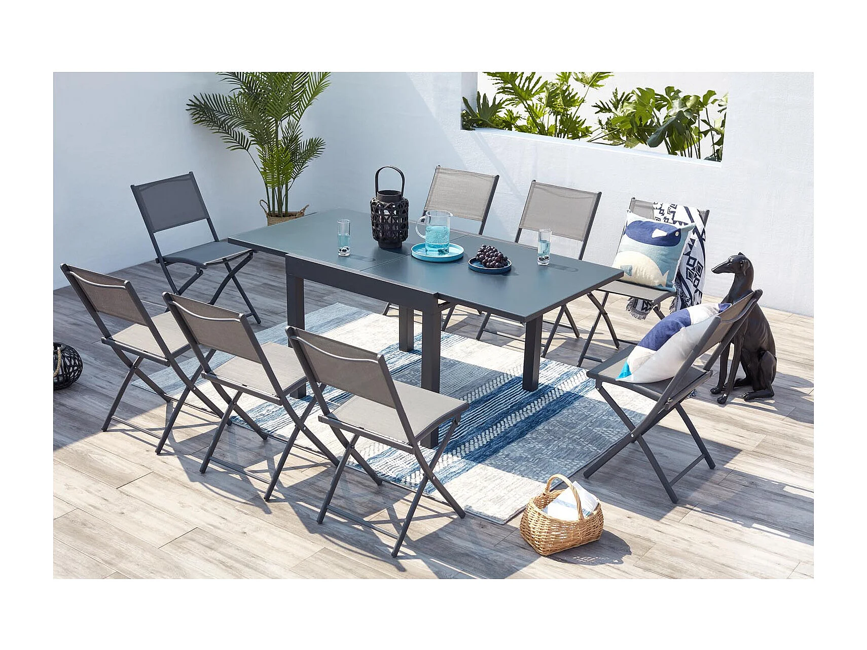 Salon de jardin 8 places en aluminium gris foncé CUALICA