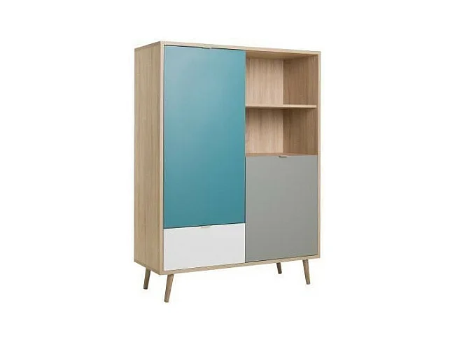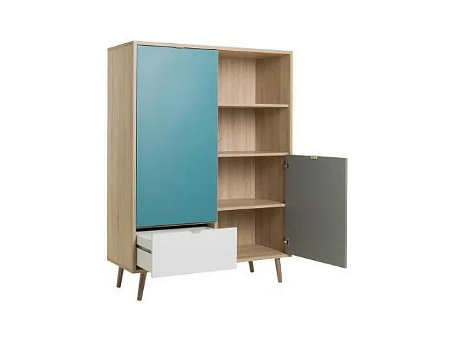 CUBA Buffet haut decor chene sonoma et blanc - Style scandinave - L 103 x P 40 x H 139 cm