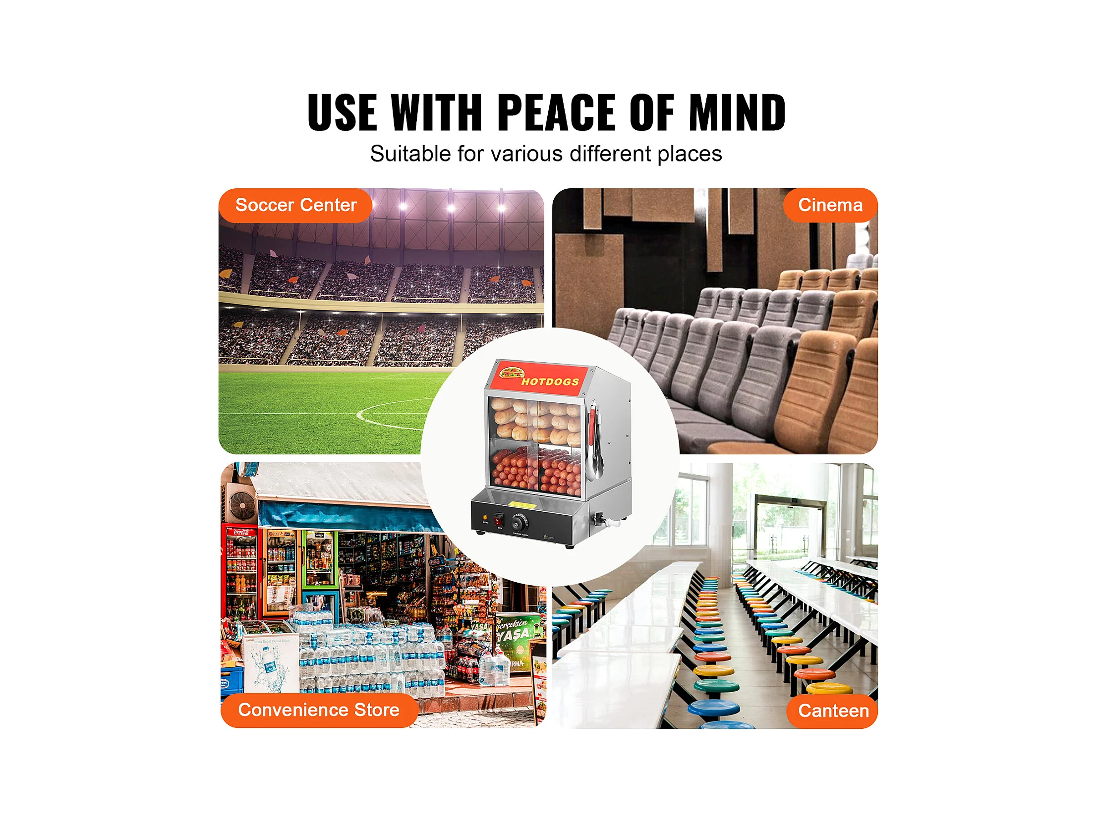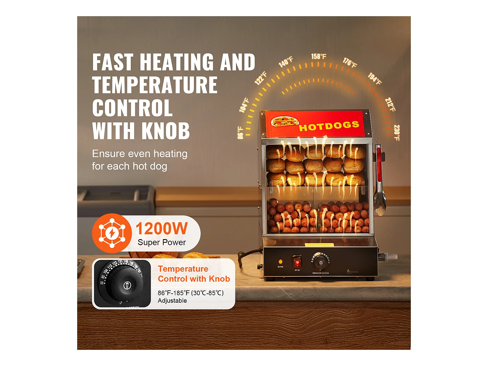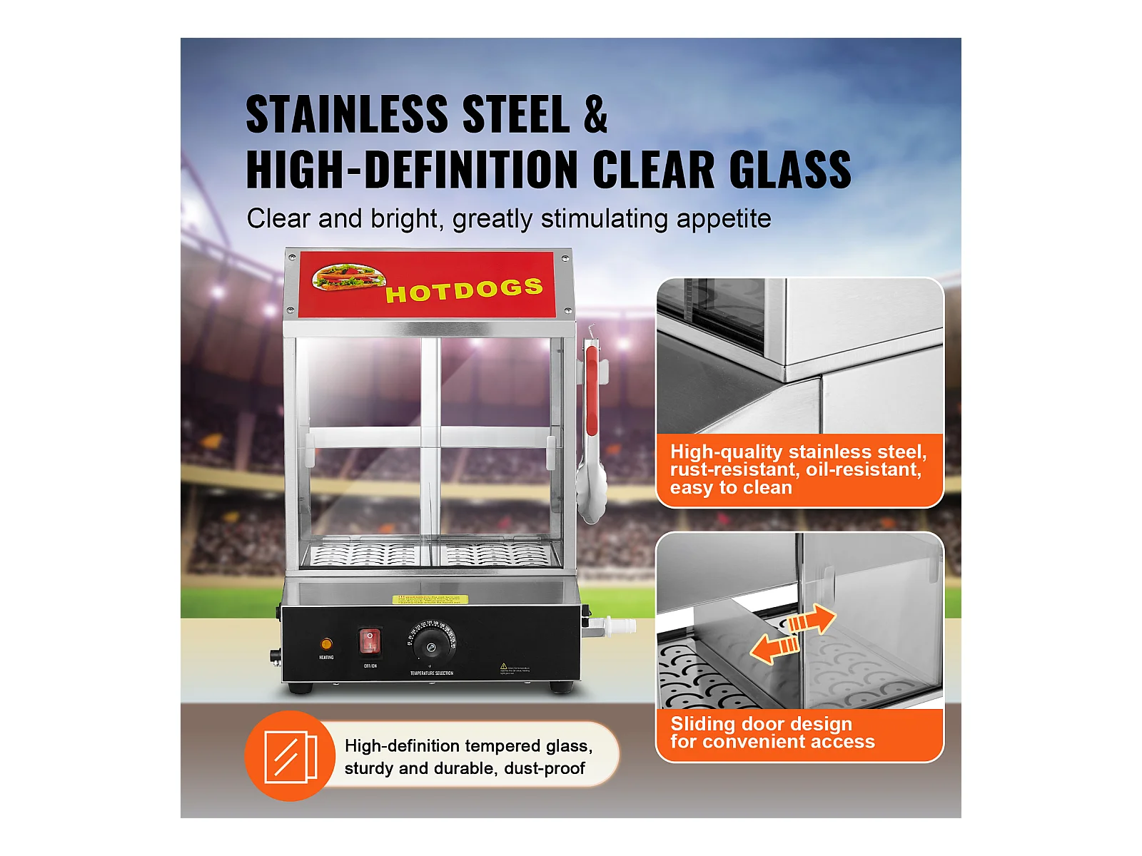 Cuiseur Vapeur pour Hot-Dogs Commercial SucceBuy Chauffe-Petits Pains électrique à 2 Niveaux Portes Coulissantes 27 L
