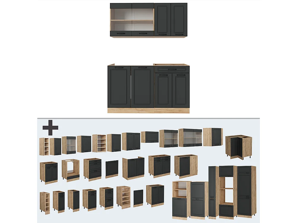 Cuisine anthracite campagne/chêne doré 140x46x81.6 r-line