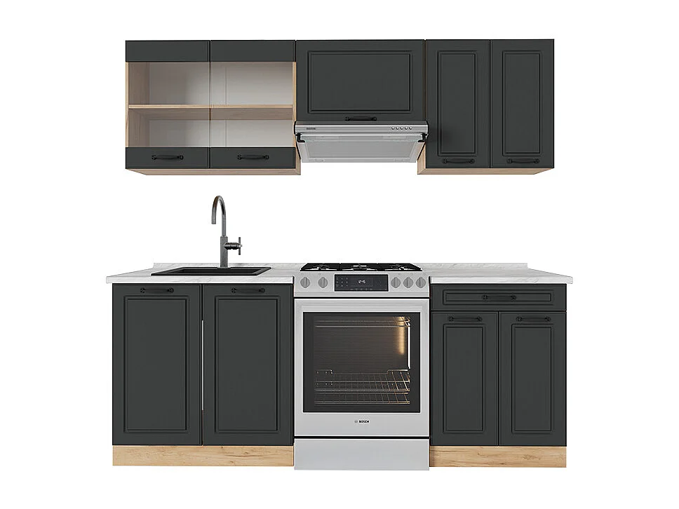 Cuisine anthracite campagne/chêne doré 200x60x81.6 r-line