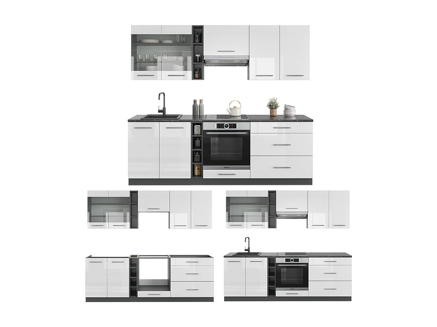 Cuisine blanc brillant/anthracite 235x46x81.6 fame-line