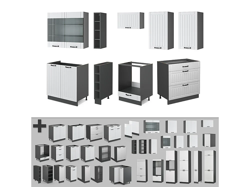 Cuisine blanc cottage/anthracite 235x60x81.6 fame-line