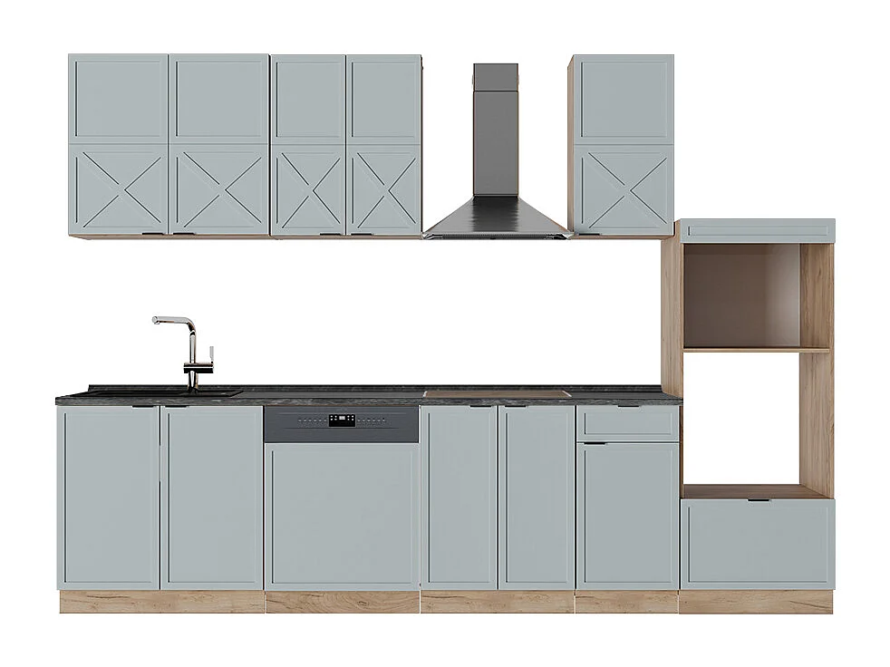 Cuisine bleu clair-gris/chêne force dor 300x60x81.6 fame-line