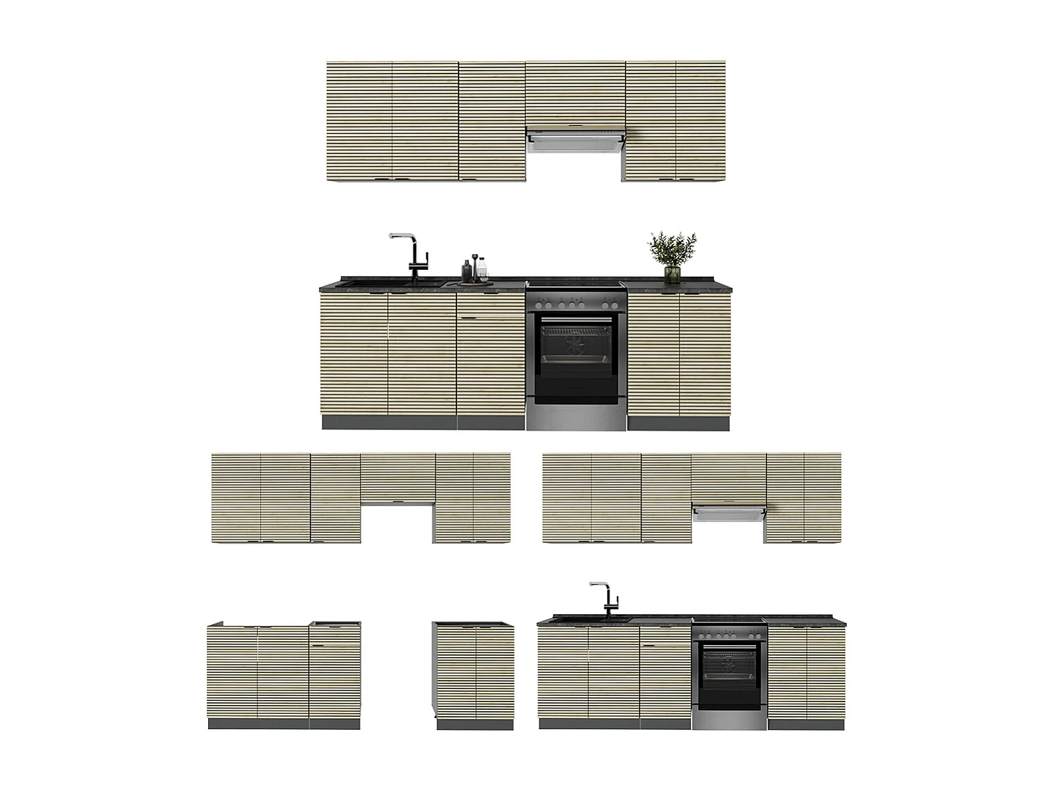 Cuisine chêne lambris/anthracite 240x60x81.6 fame-line