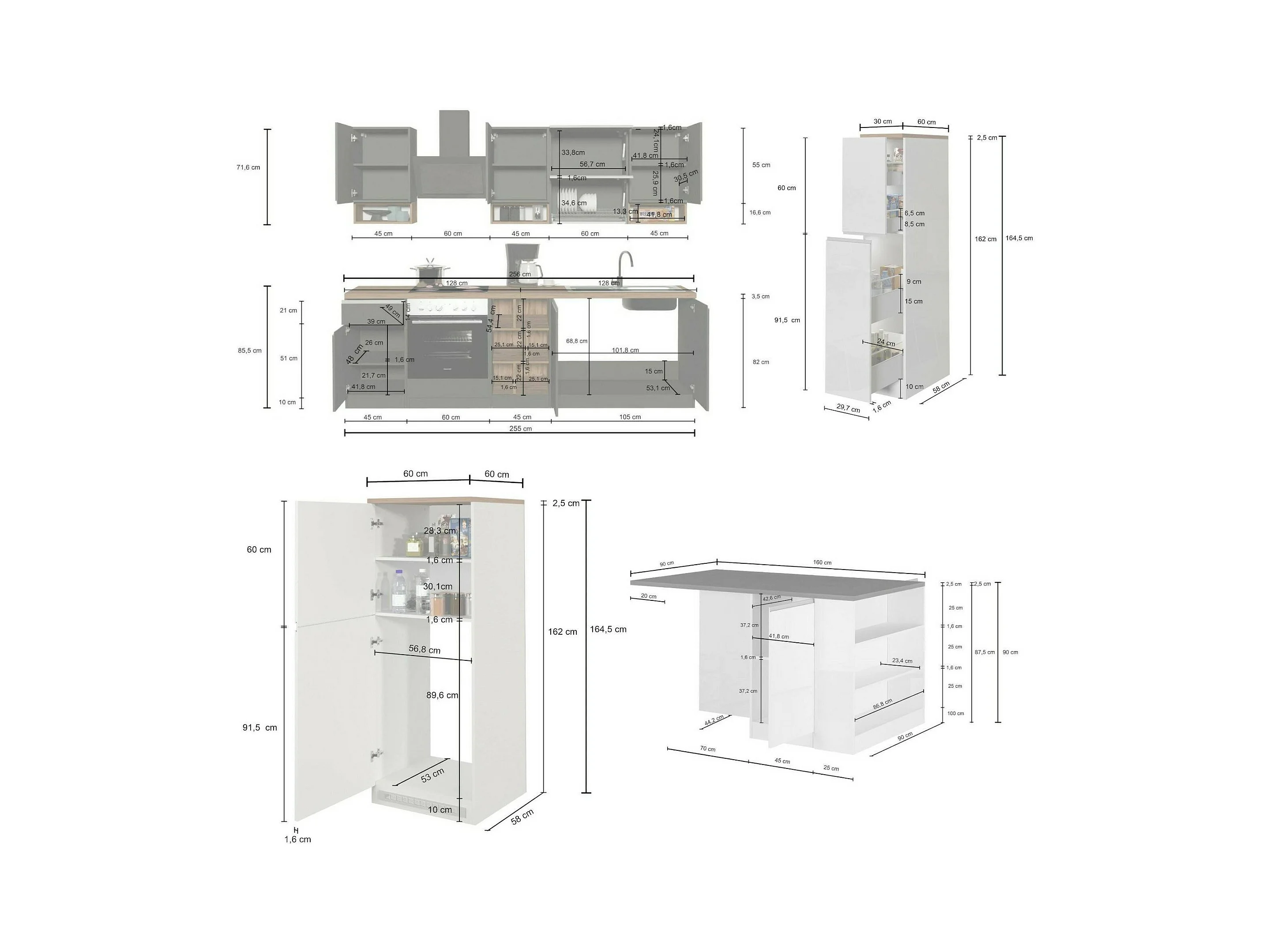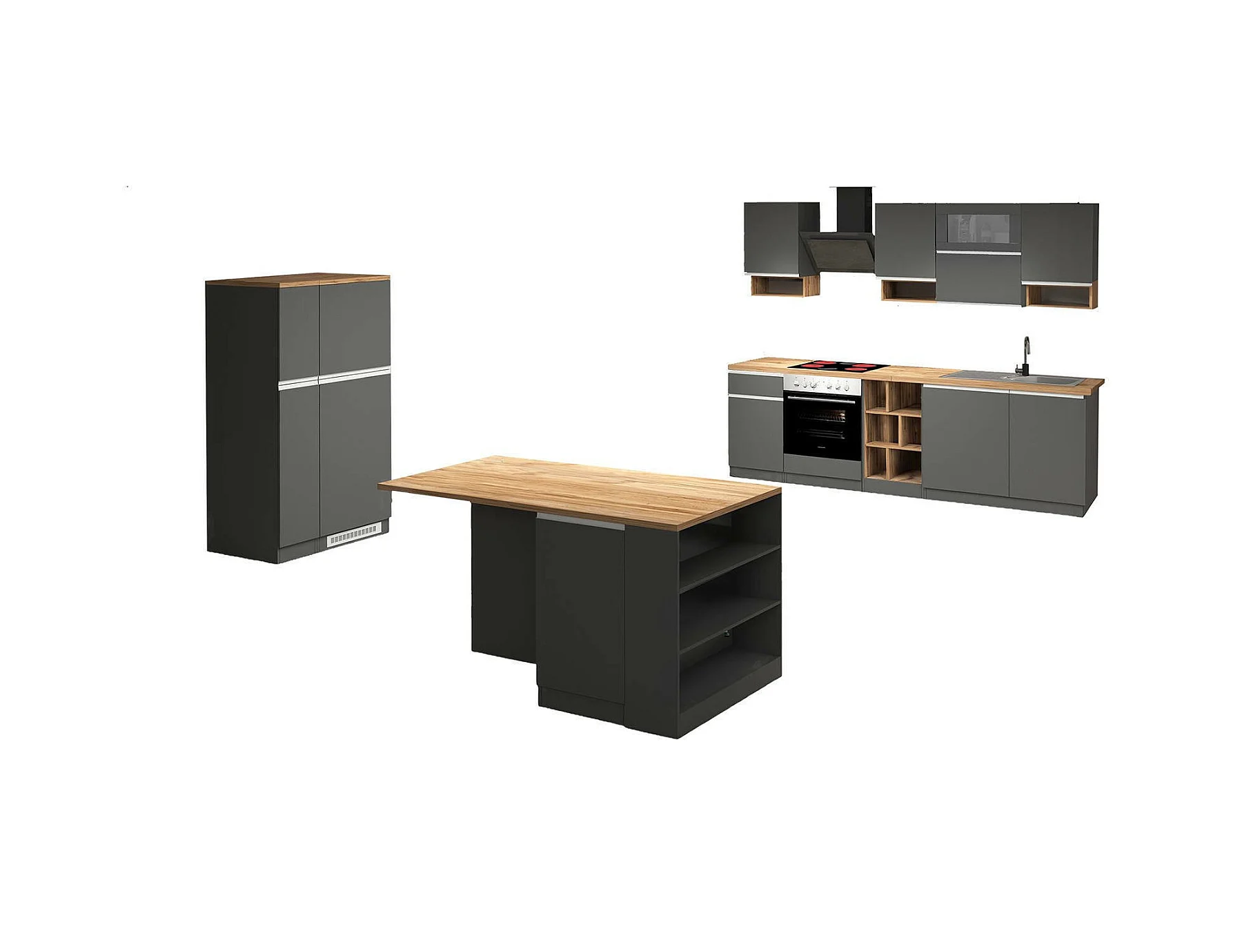 Cuisine complète Danderso, Ensemble avec garde-manger, Meuble de kitchenette, Kit bloc avec îlot et porte-frigo, 100% Made in Italy, Anthracite et Chêne