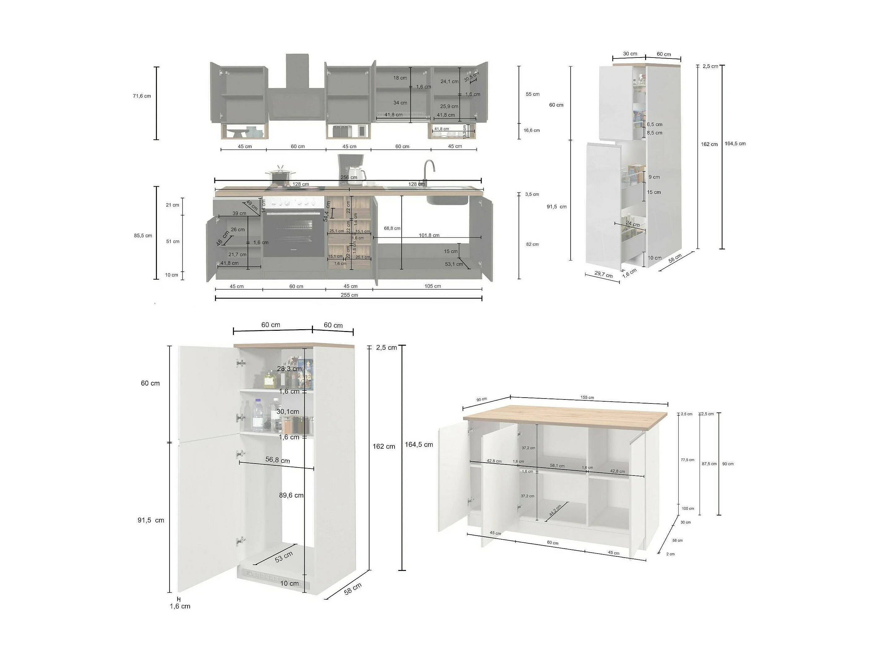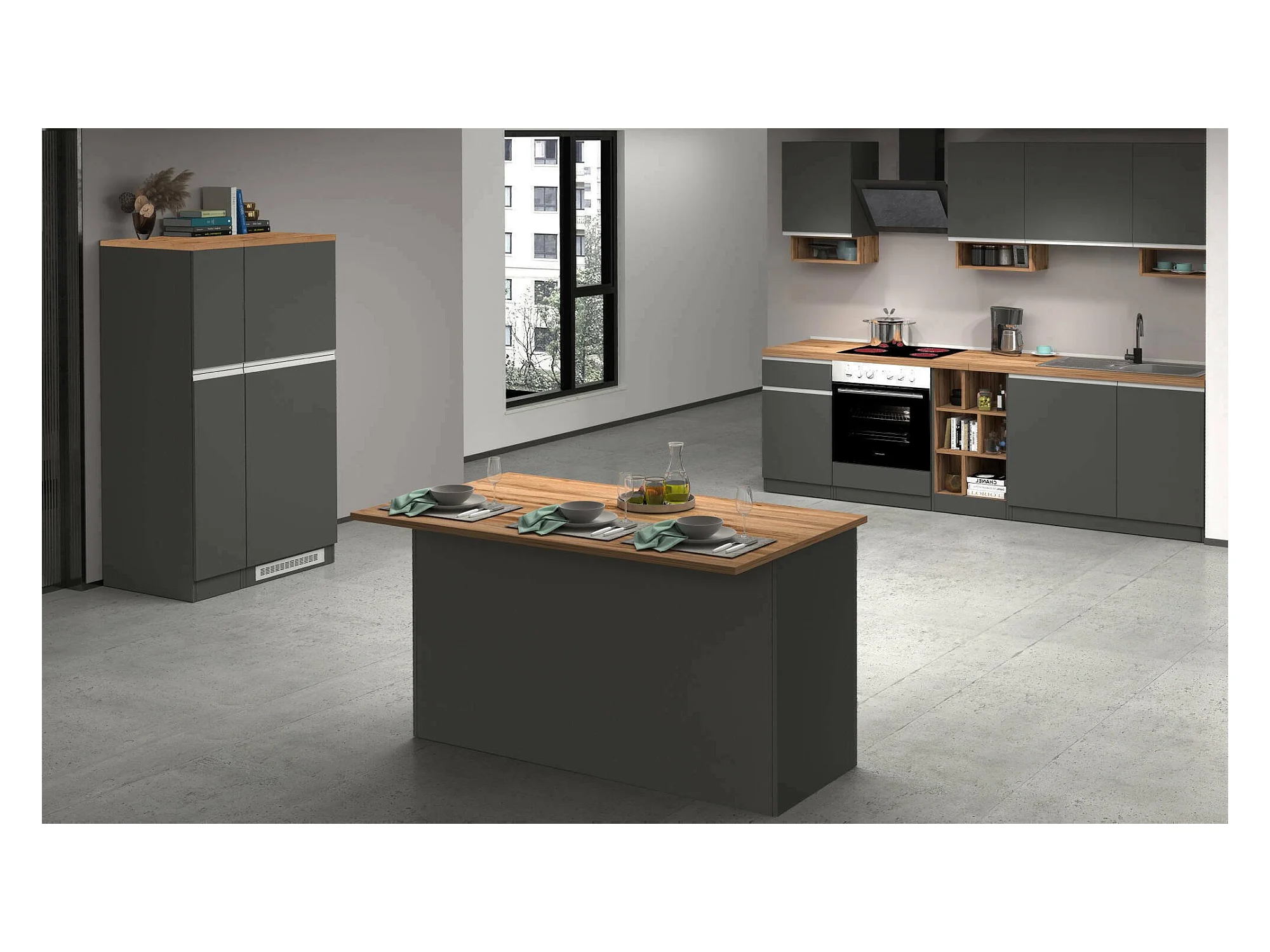 Cuisine complète Danderso, Ensemble avec garde-manger, Meuble de kitchenette, Kit bloc avec îlot et porte-frigo, 100% Made in Italy, Anthracite et Chêne