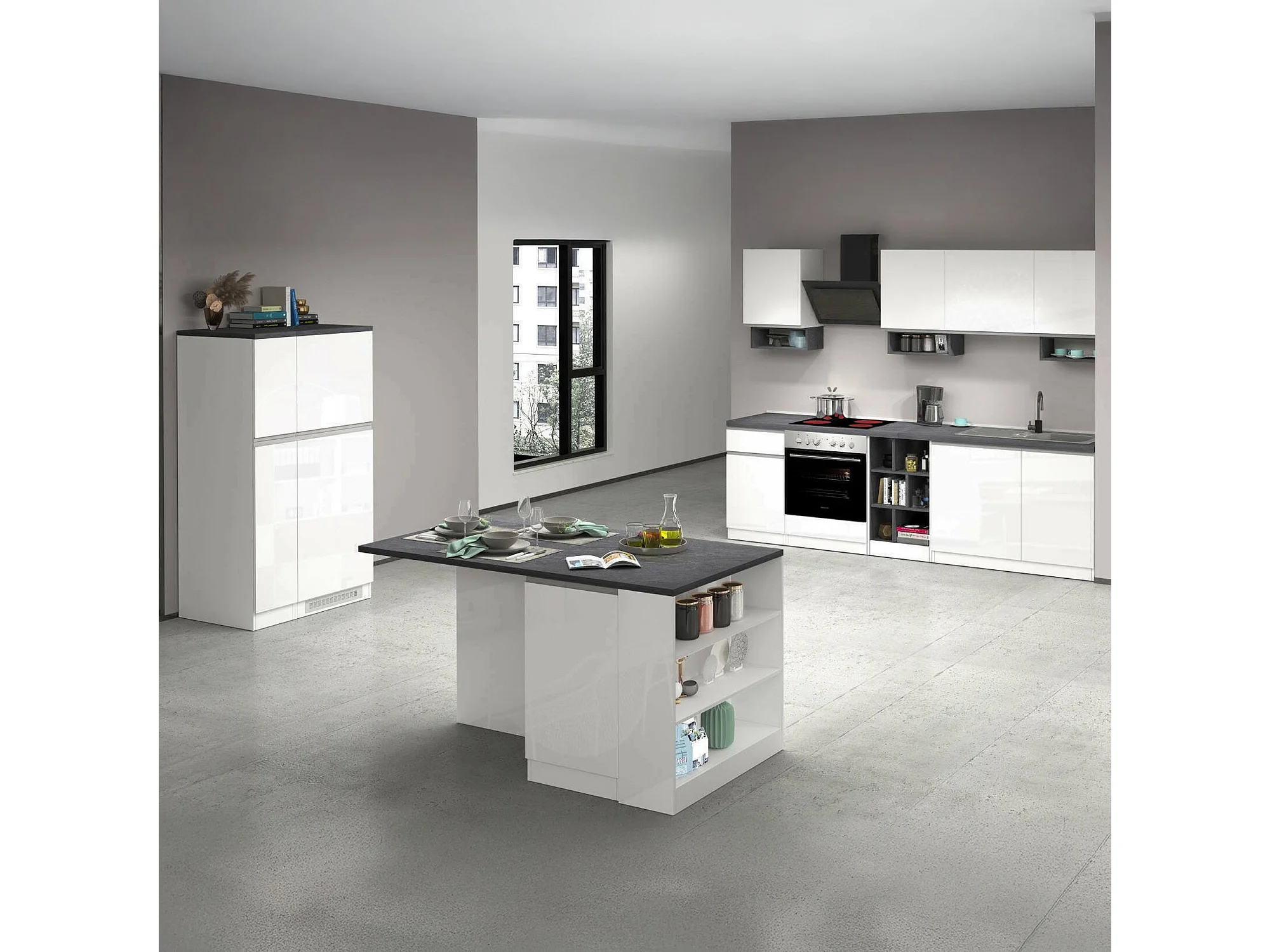 Cuisine complète Dantenucc, Ensemble avec garde-manger, Meuble de kitchenette, Kit bloc avec îlot et porte-frigo, 100% Made in Italy, Blanc brillant et ardoise