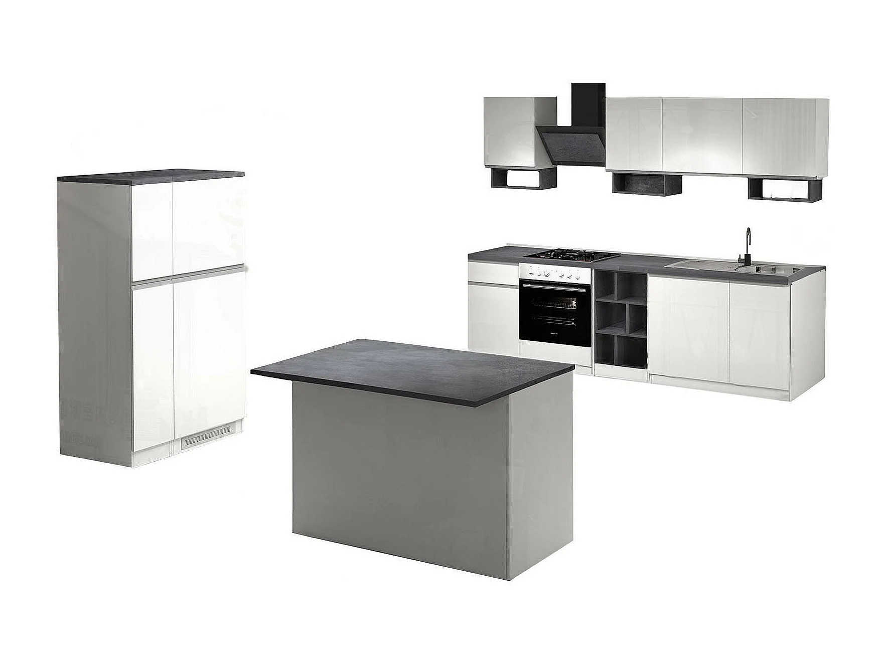 Cuisine complète Dantenucc, Ensemble avec garde-manger, Meuble de kitchenette, Kit bloc avec îlot et porte-frigo, 100% Made in Italy, Blanc brillant et ardoise
