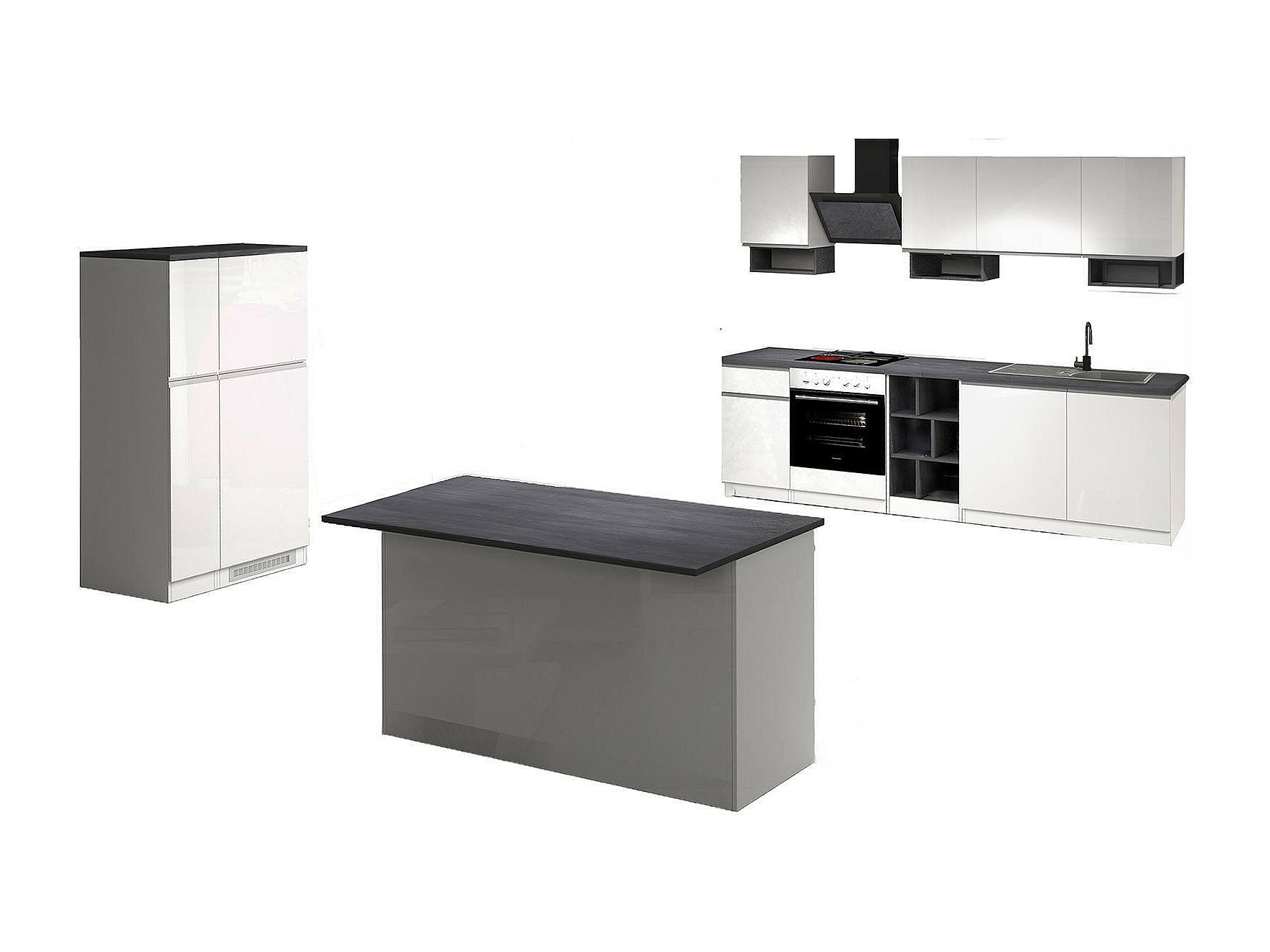 Cuisine complète Dantenucc, Ensemble avec garde-manger, Meuble de kitchenette, Kit bloc avec îlot et porte-frigo, 100% Made in Italy, Blanc brillant et ardoise