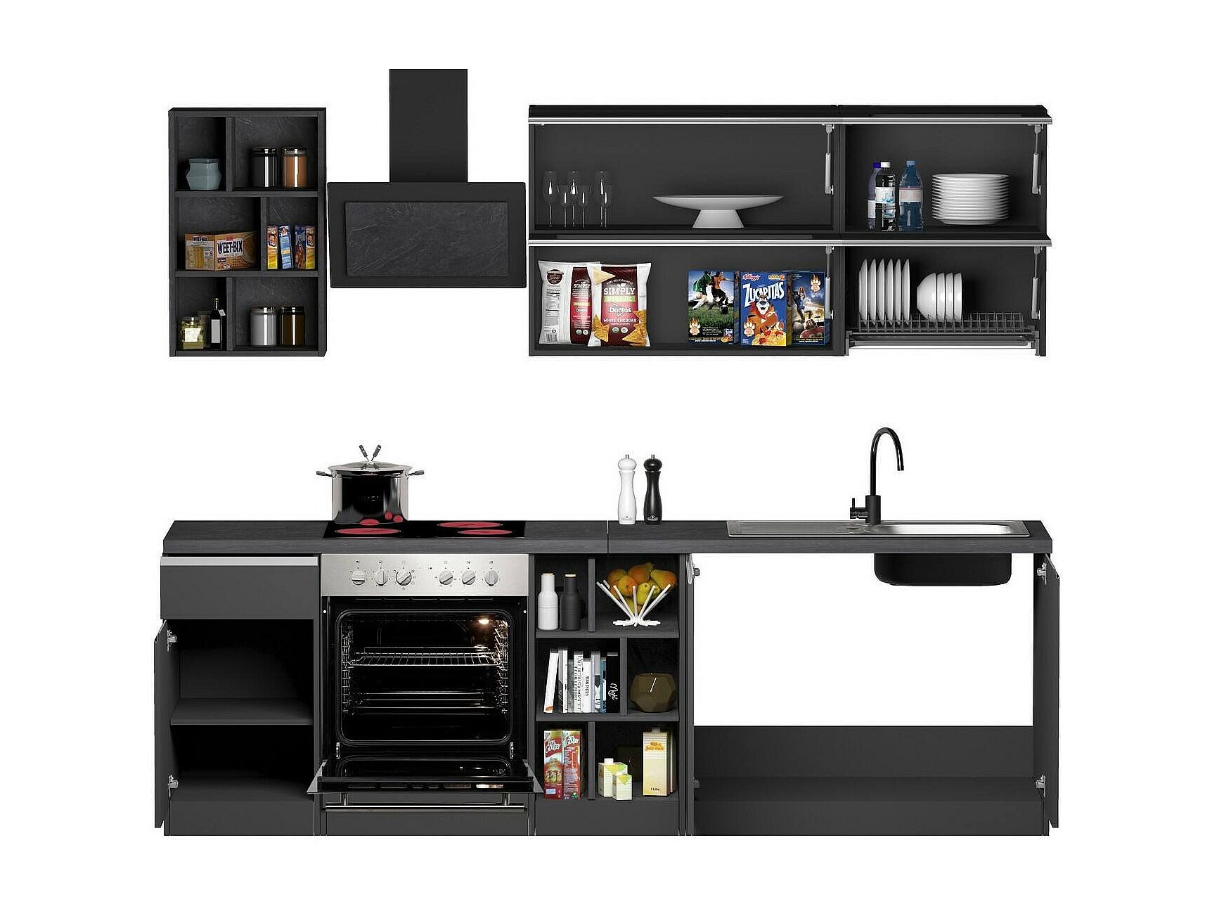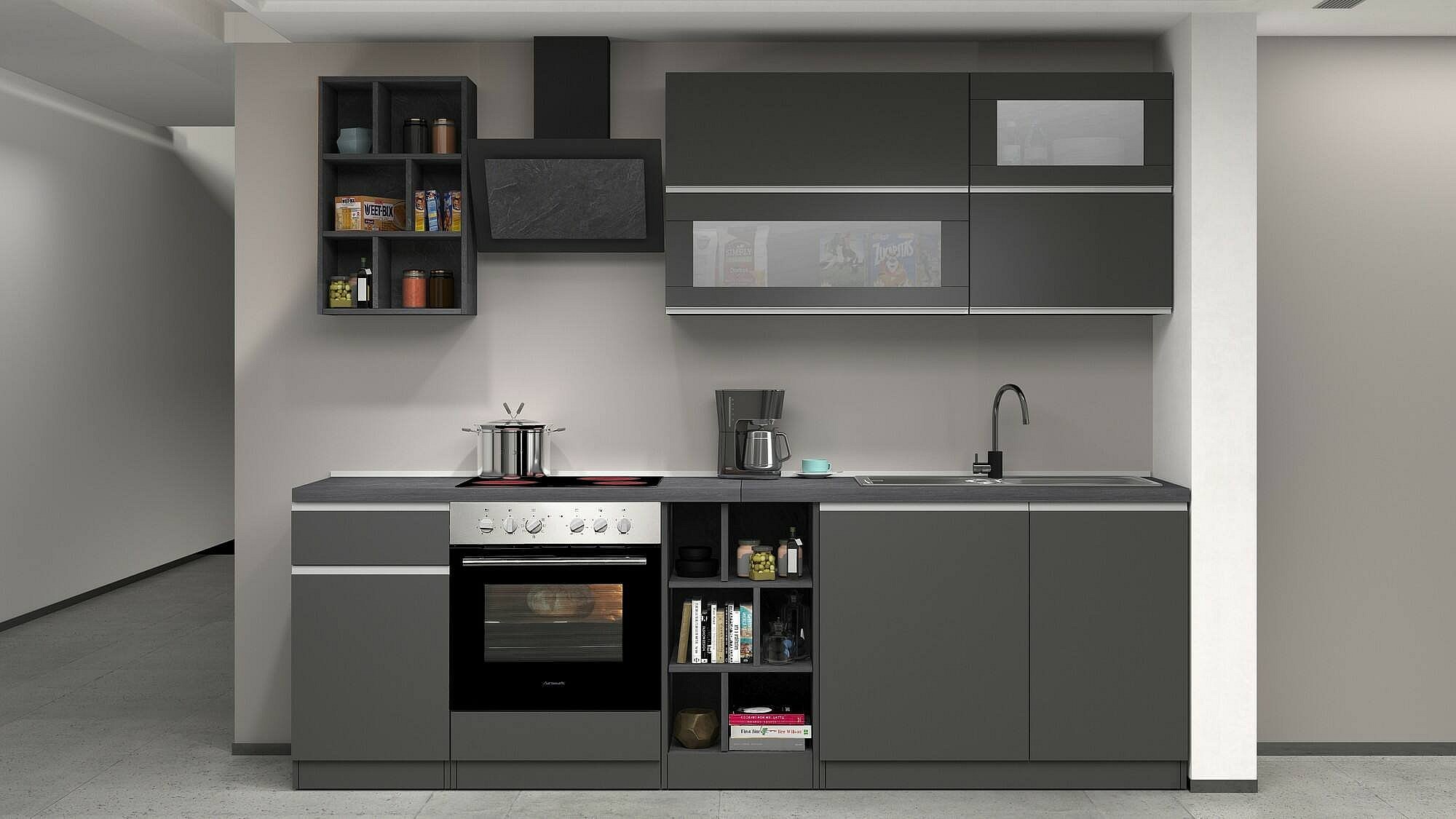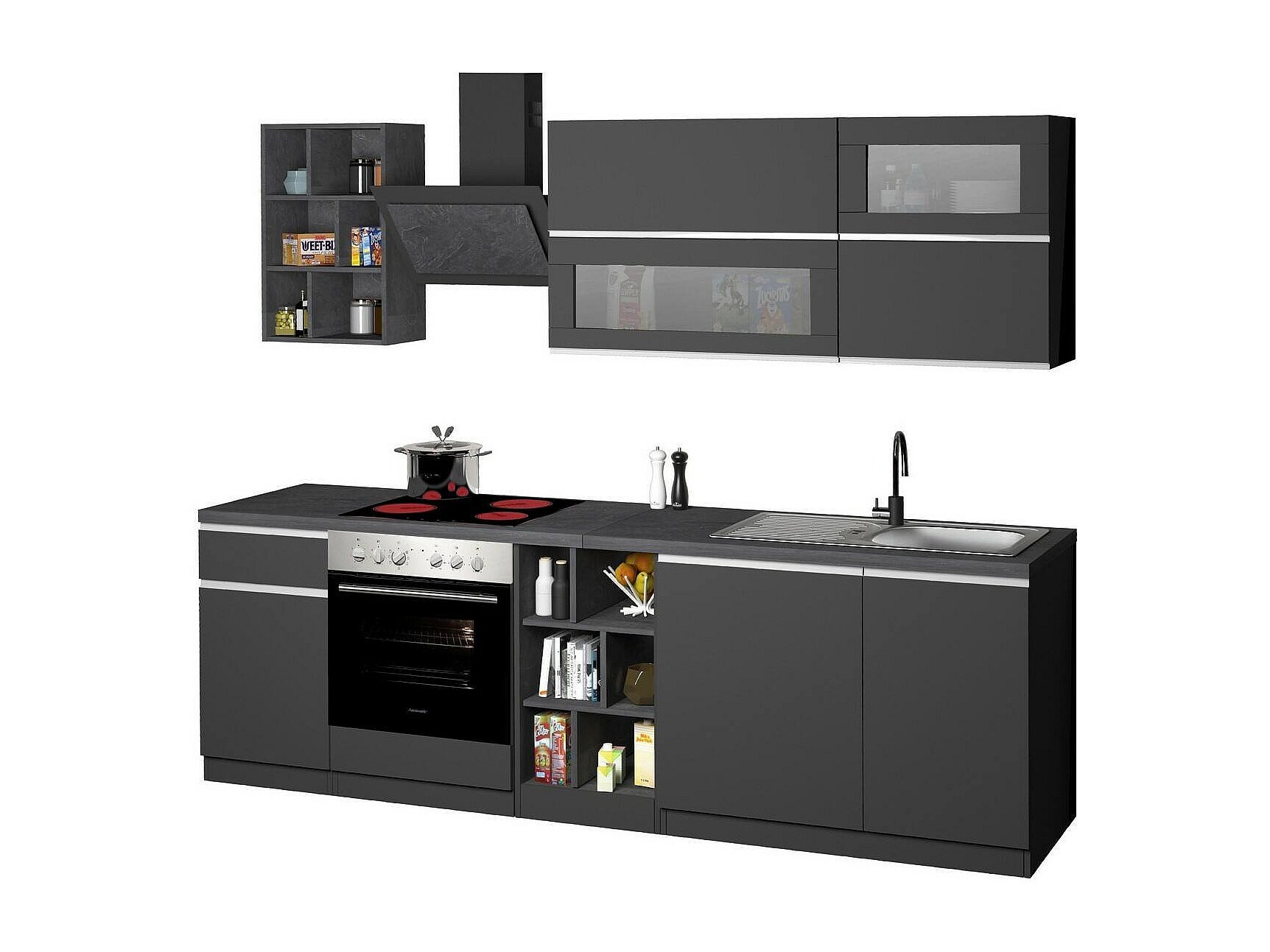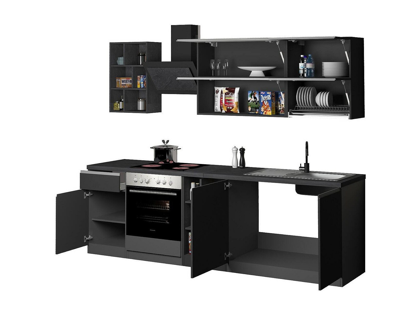 Cuisine complète Dcastill, Ensemble avec garde-manger, Meuble de kitchenette, Kit bloc linéaire, 100% Made in Italy, 255x60h85 cm, Anthracite et Ardoise