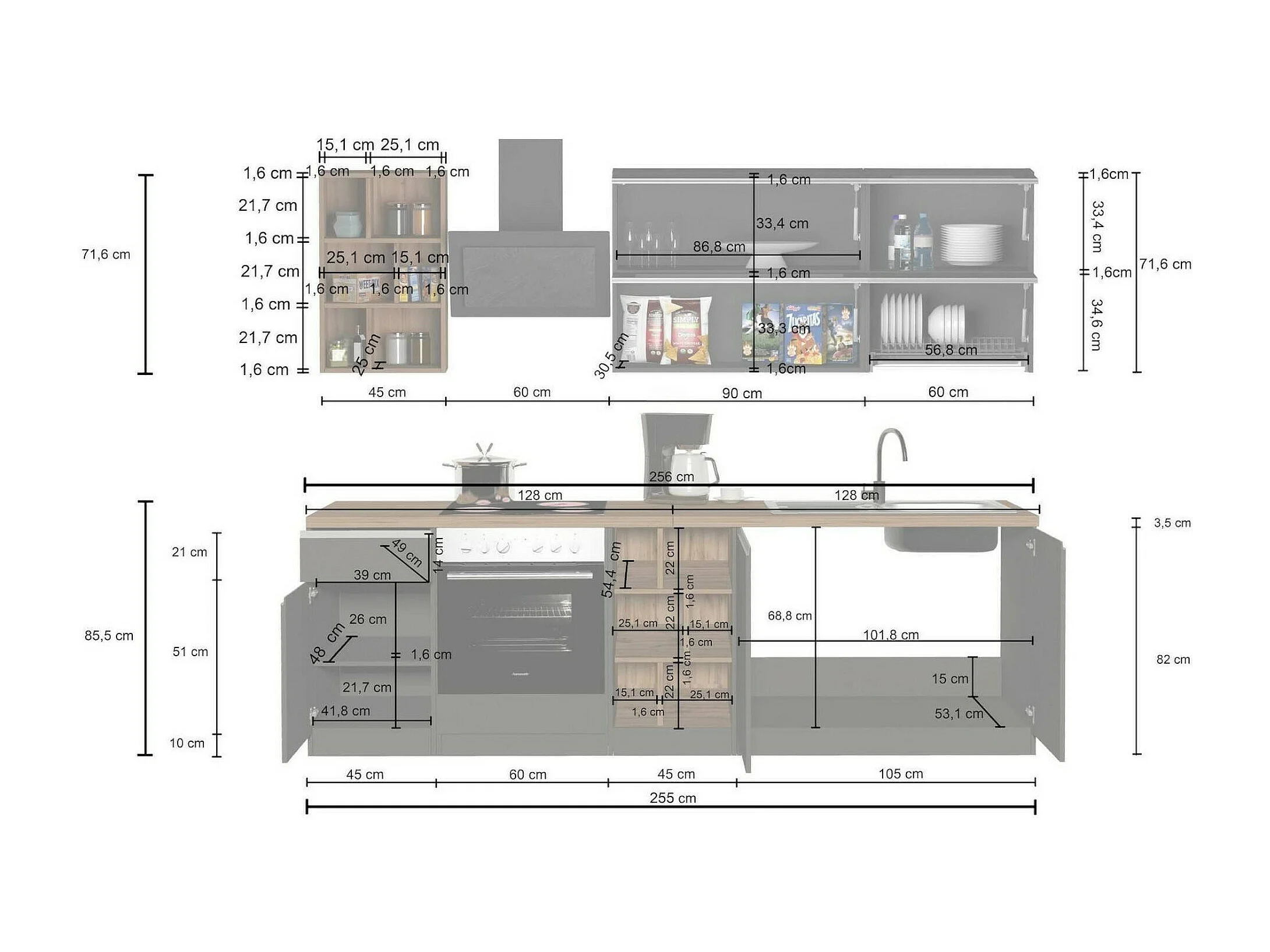 Cuisine Complète Sources, Modulable Made in Italy, Blanc Brillant