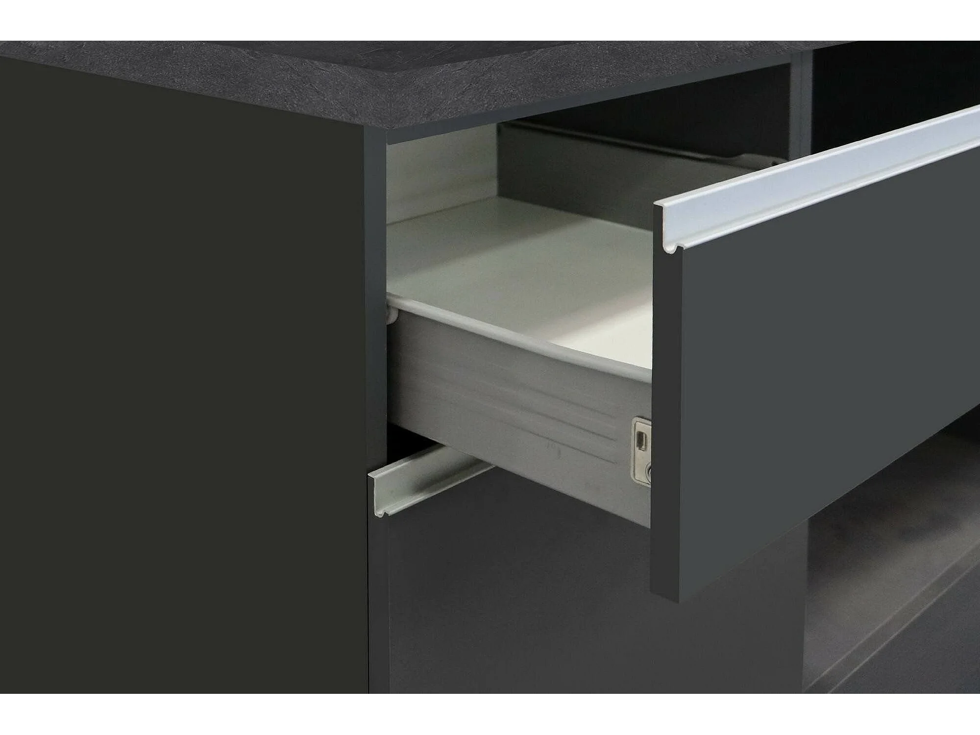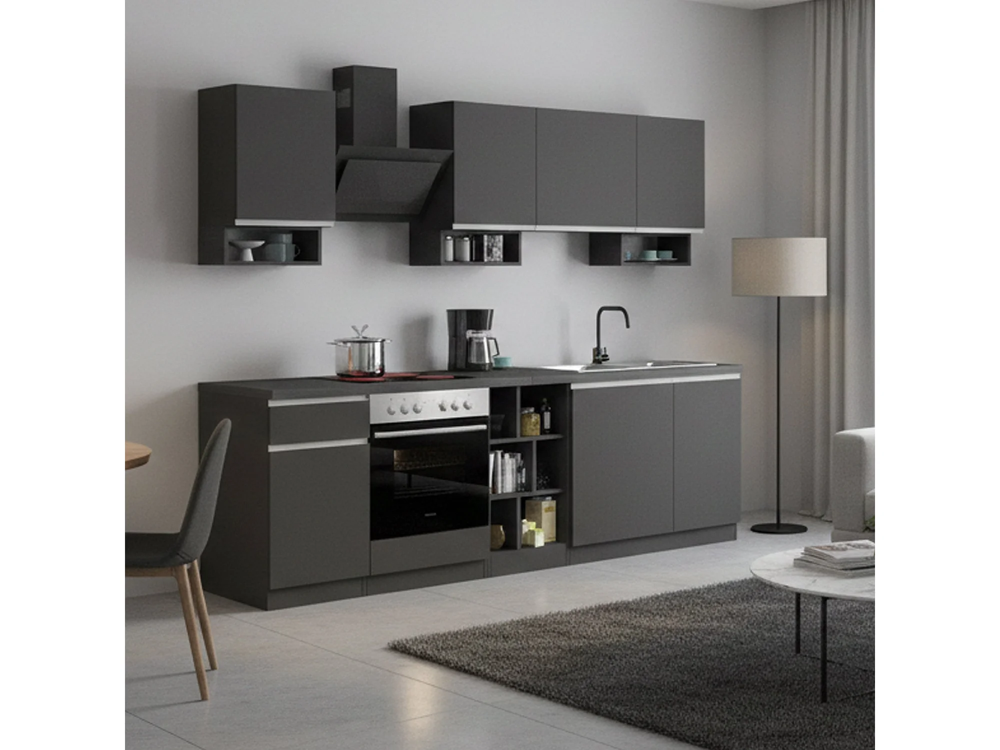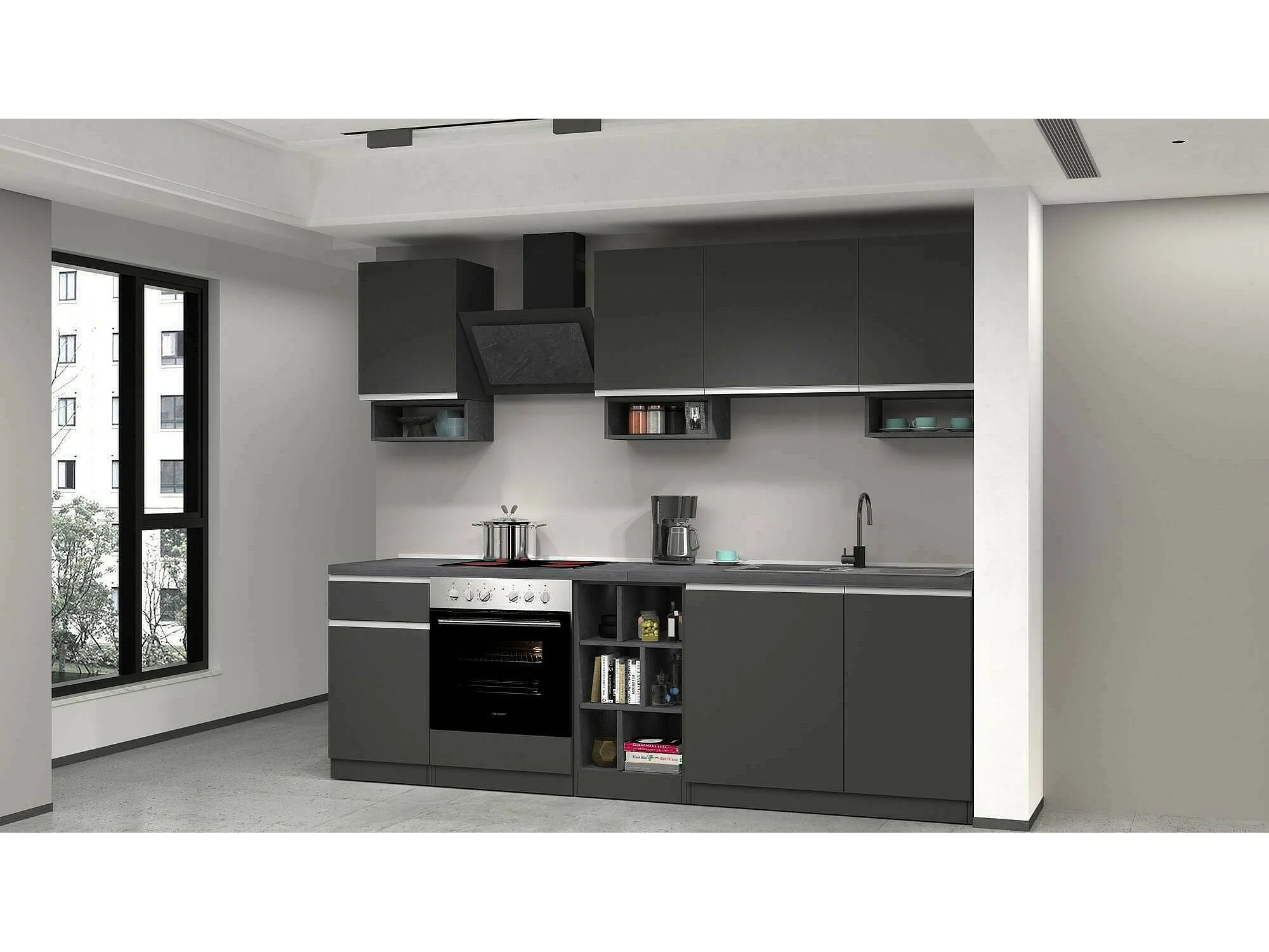 Cuisine complète Dcelient, Ensemble avec garde-manger, Meuble de kitchenette, Kit bloc linéaire, 100% Made in Italy, 255x60h85 cm, Anthracite et Ardoise
