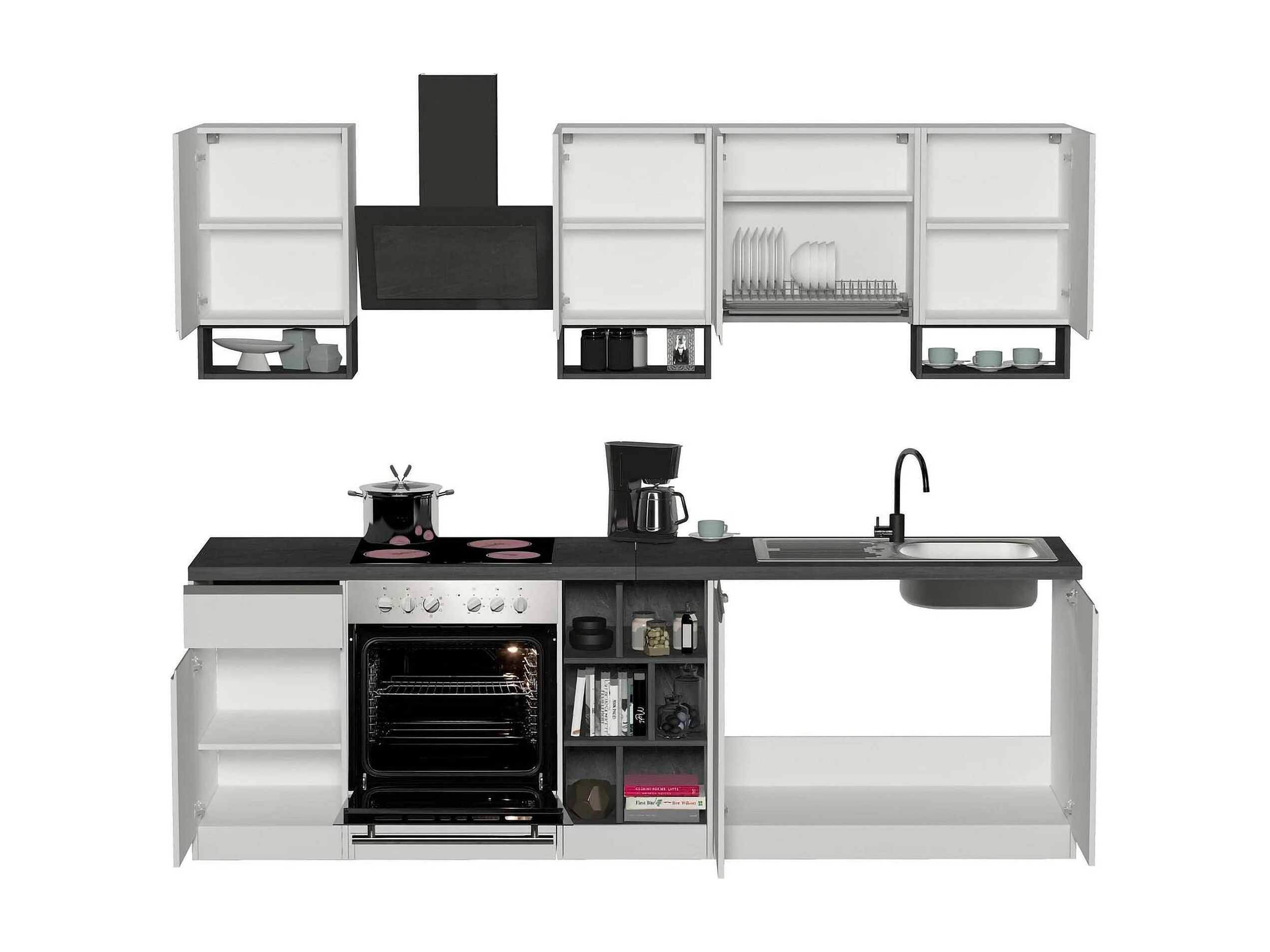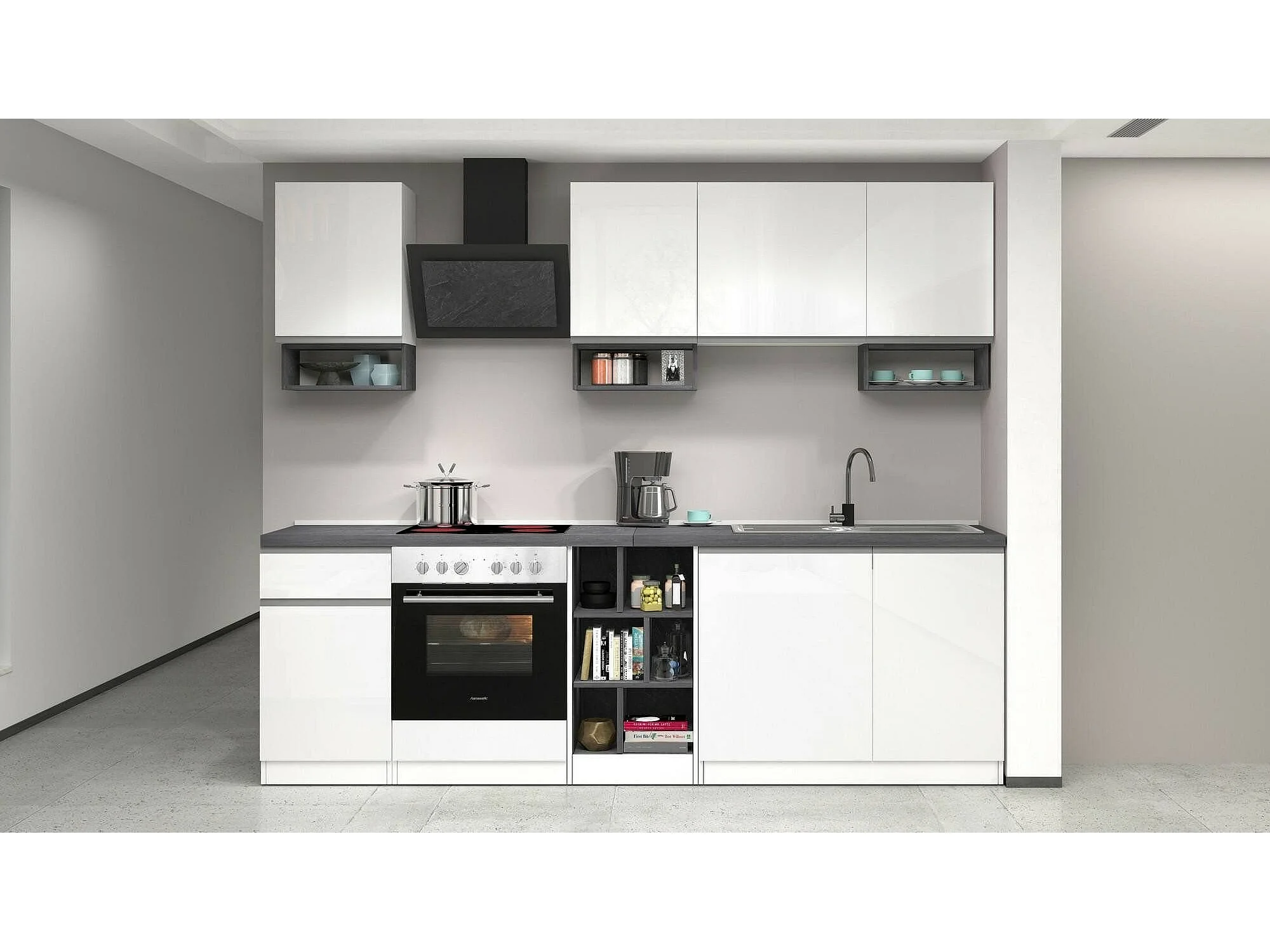 Cuisine complète Dcelient, Ensemble avec garde-manger, Meuble de kitchenette, Kit bloc linéaire, 100% Made in Italy, 255x60h85 cm, Blanc brillant et ardoise