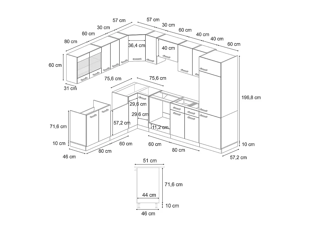 Cuisine en angle anthracite brillant/chêne doré 287x60x81.6 r-line