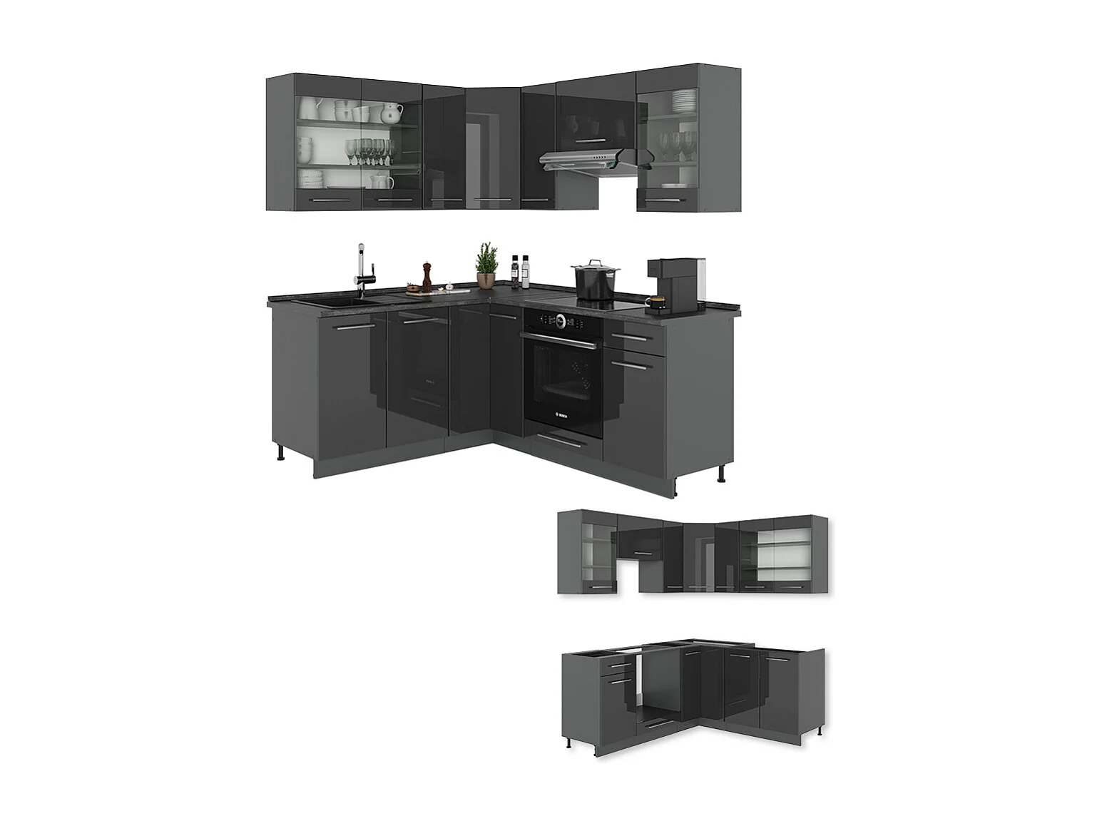 Cuisine en angle anthracite brillant/blanc 190x60x81.6 rick