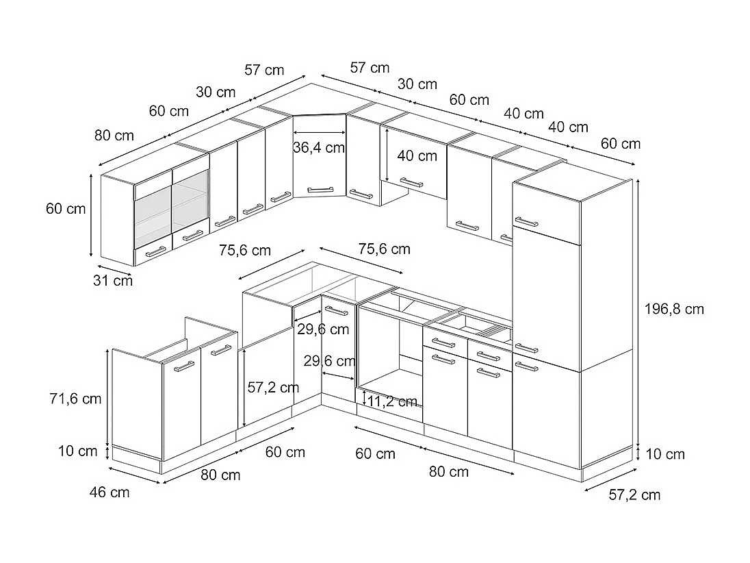 Cuisine en angle béton noir/chêne doré 287x46x81.6 r-line
