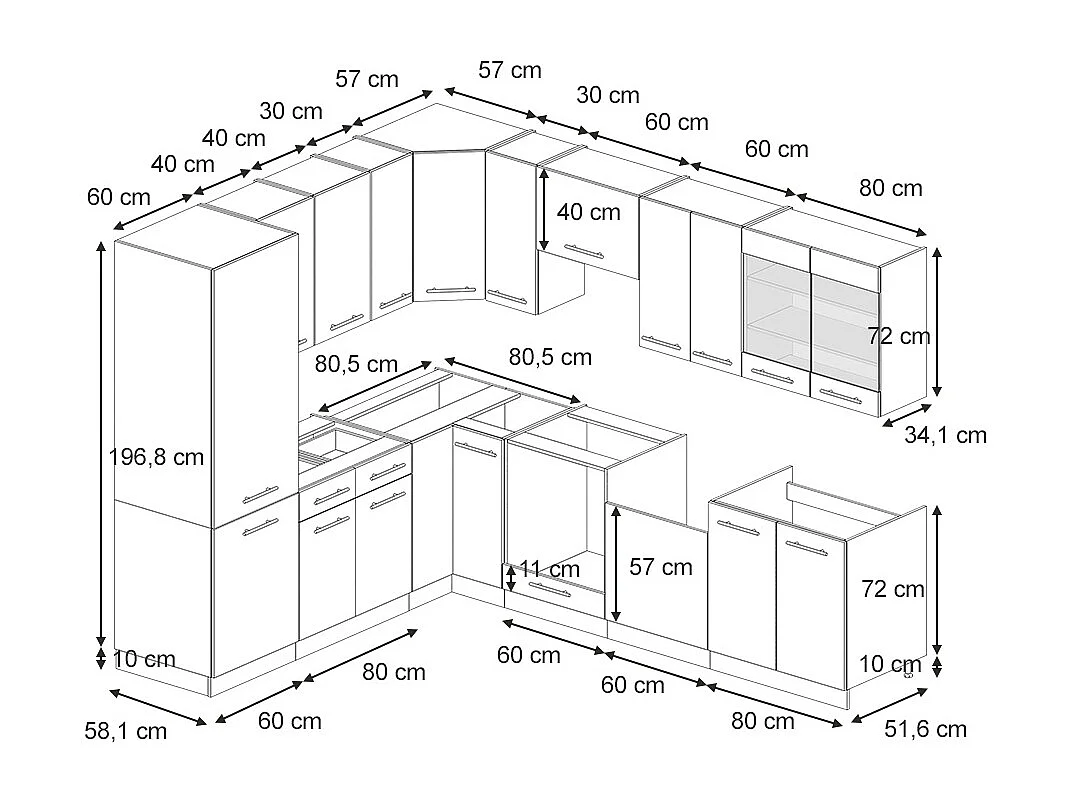 Cuisine en angle blanc campagne 287x46x81.6 fame-line