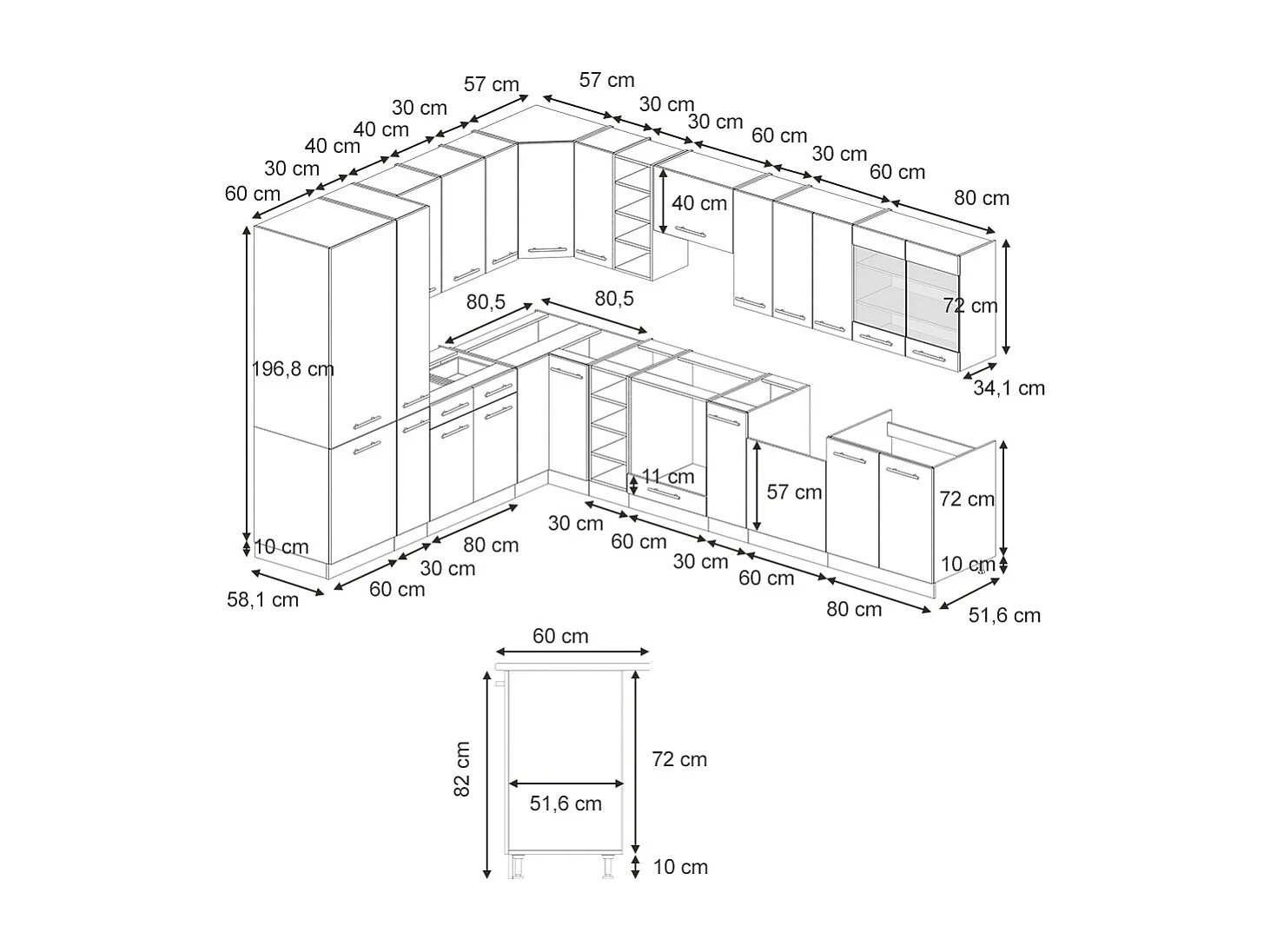 Cuisine en angle blanc campagne 347x60x81.6 fame-line