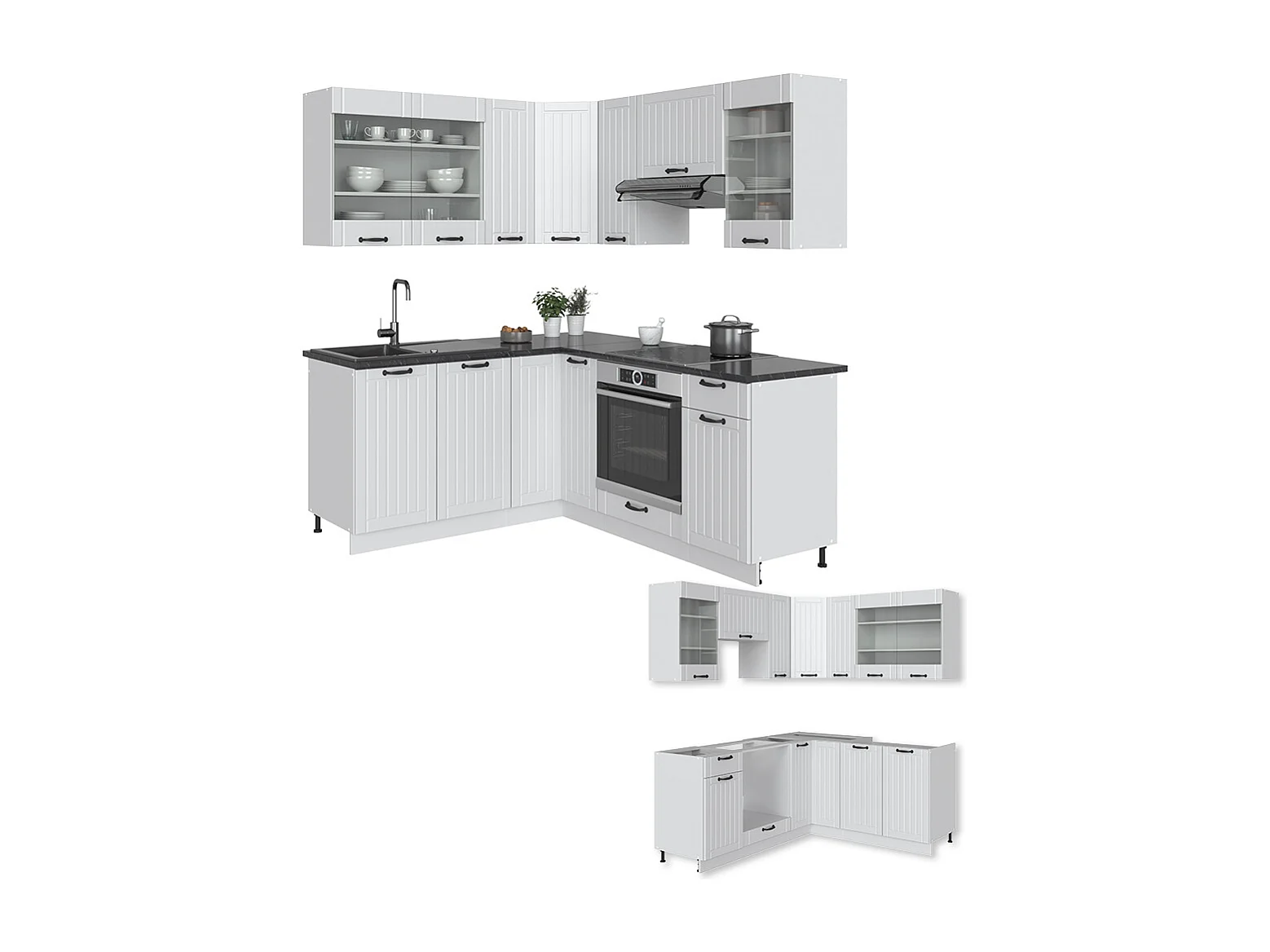 Cuisine en angle blanc campagne/blanc 190x60x81.6 fame-line