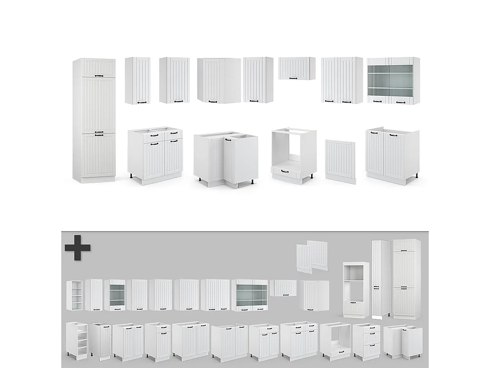 Cuisine en angle blanc campagne/blanc 287x60x81.6 fame-line