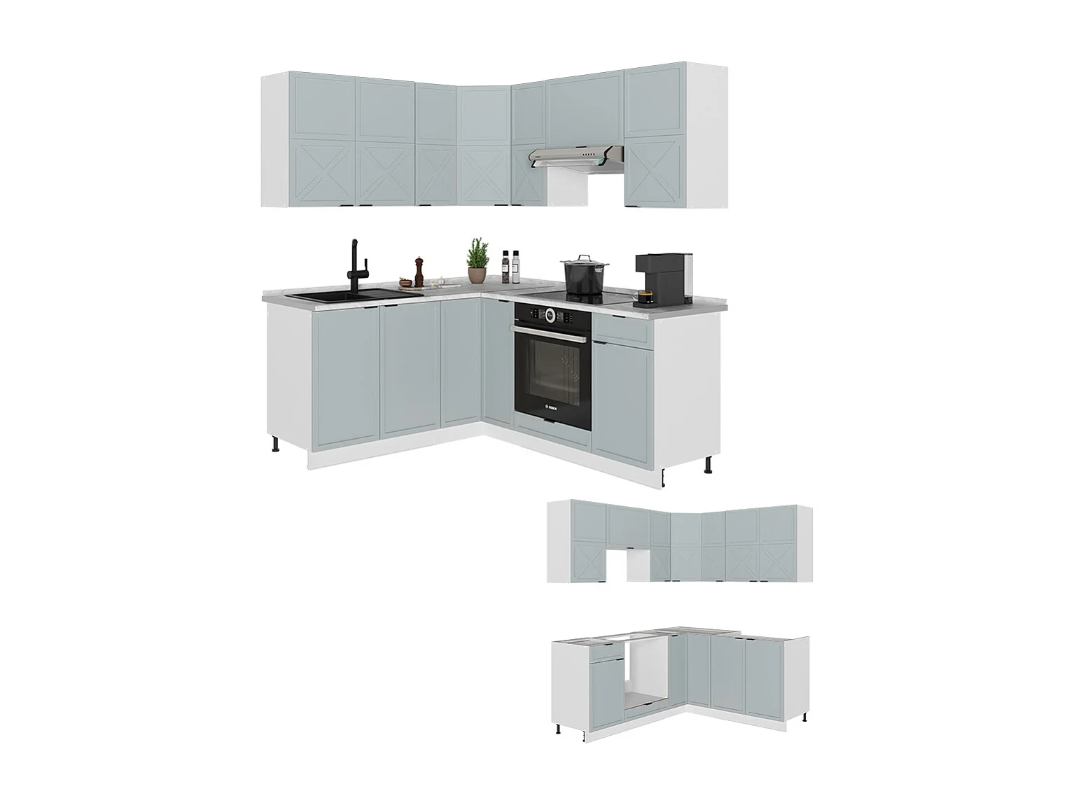 Cuisine en angle bleu clair-gris/blanc 190x46x81.6 fame-line