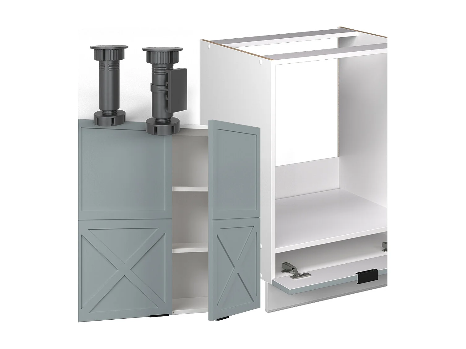 Cuisine en angle bleu clair-gris/blanc 287x46x81.6 fame-line