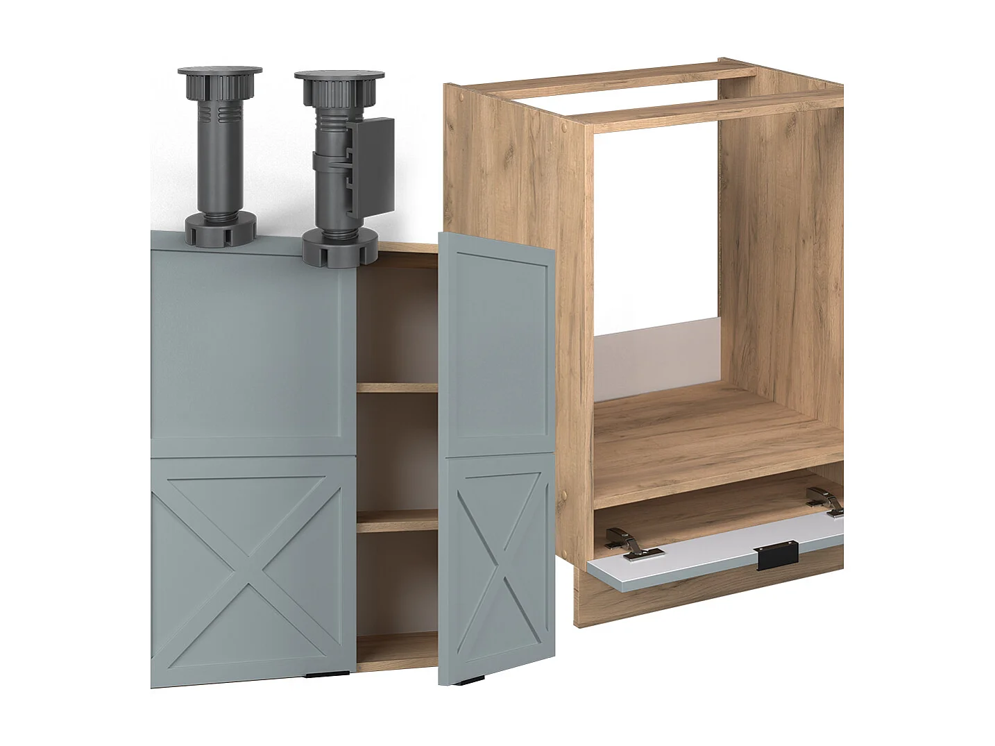 Cuisine en angle bleu clair-gris/chêne force dor 190x60x81.6 fame-line