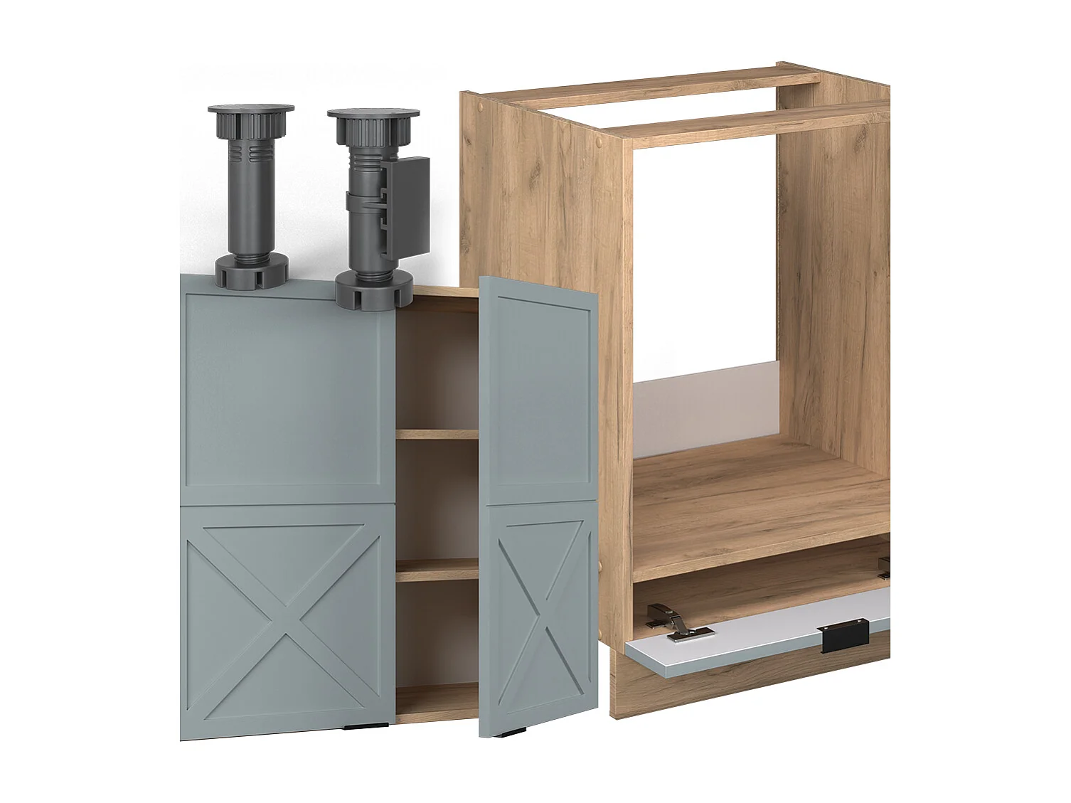 Cuisine en angle bleu clair-gris/chêne force dor 287x46x81.6 fame-line